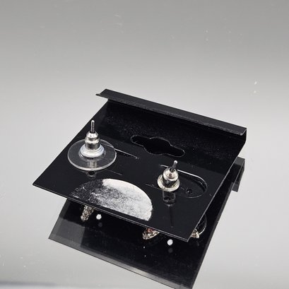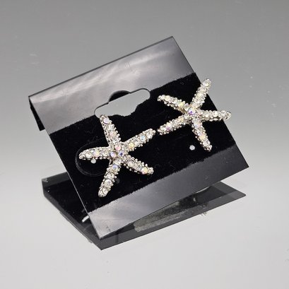Sparkly Rhinestone Starfish Post Earrings - Silver Tone