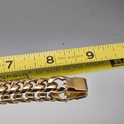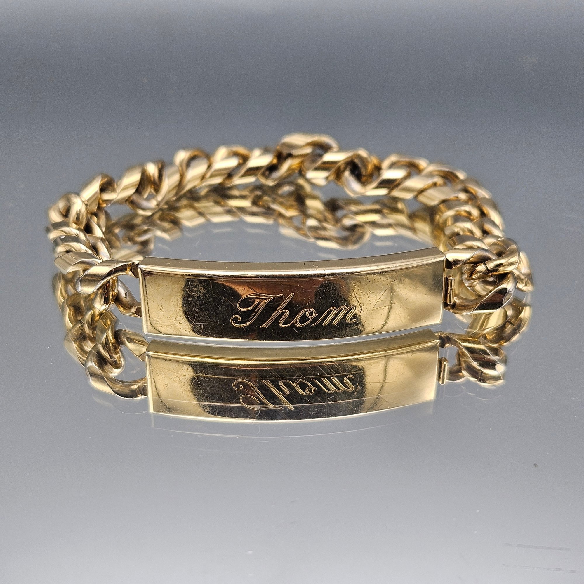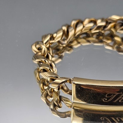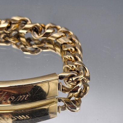 Speidel USA Gold Tone ID Curb Link Bracelet Engraved "Thom" 1979