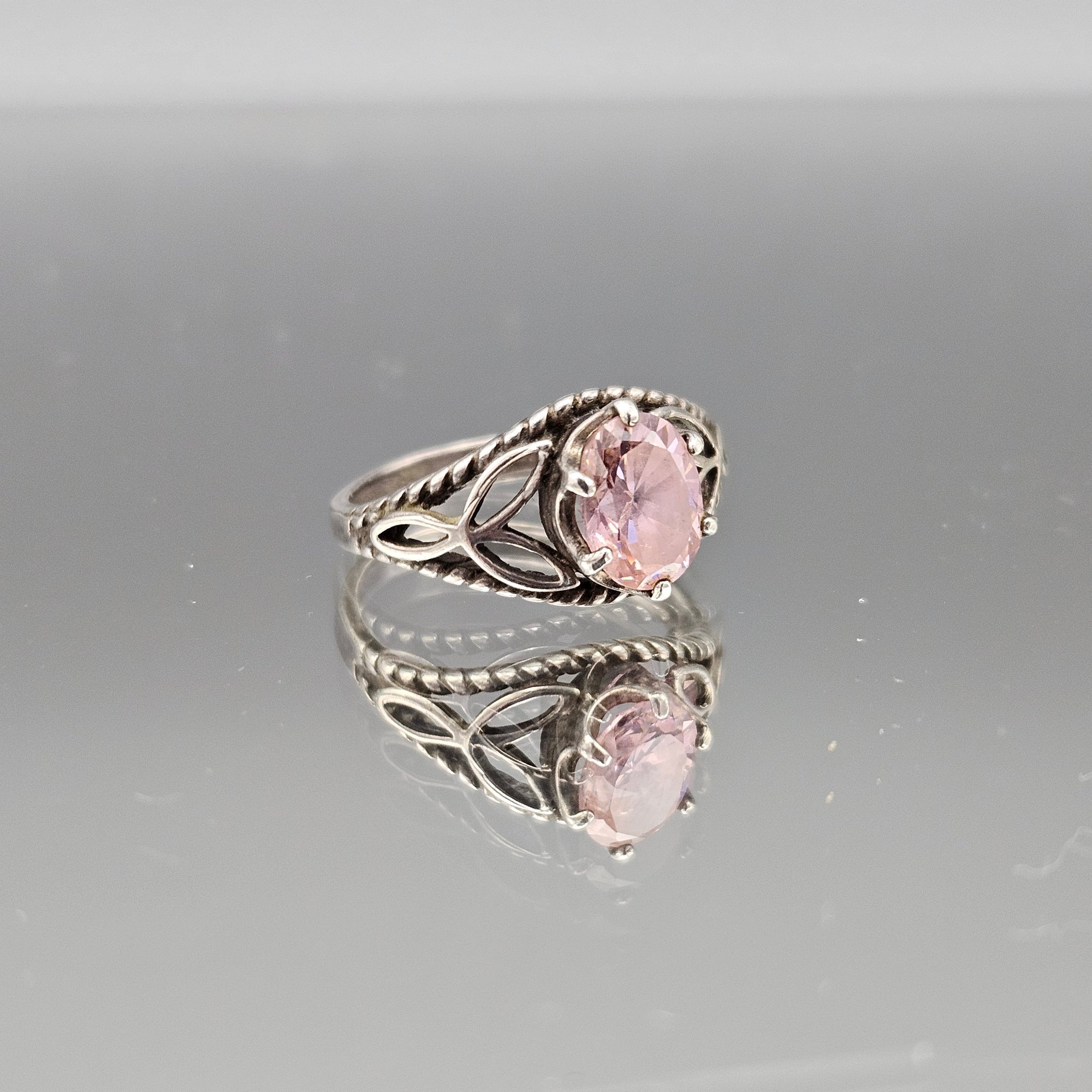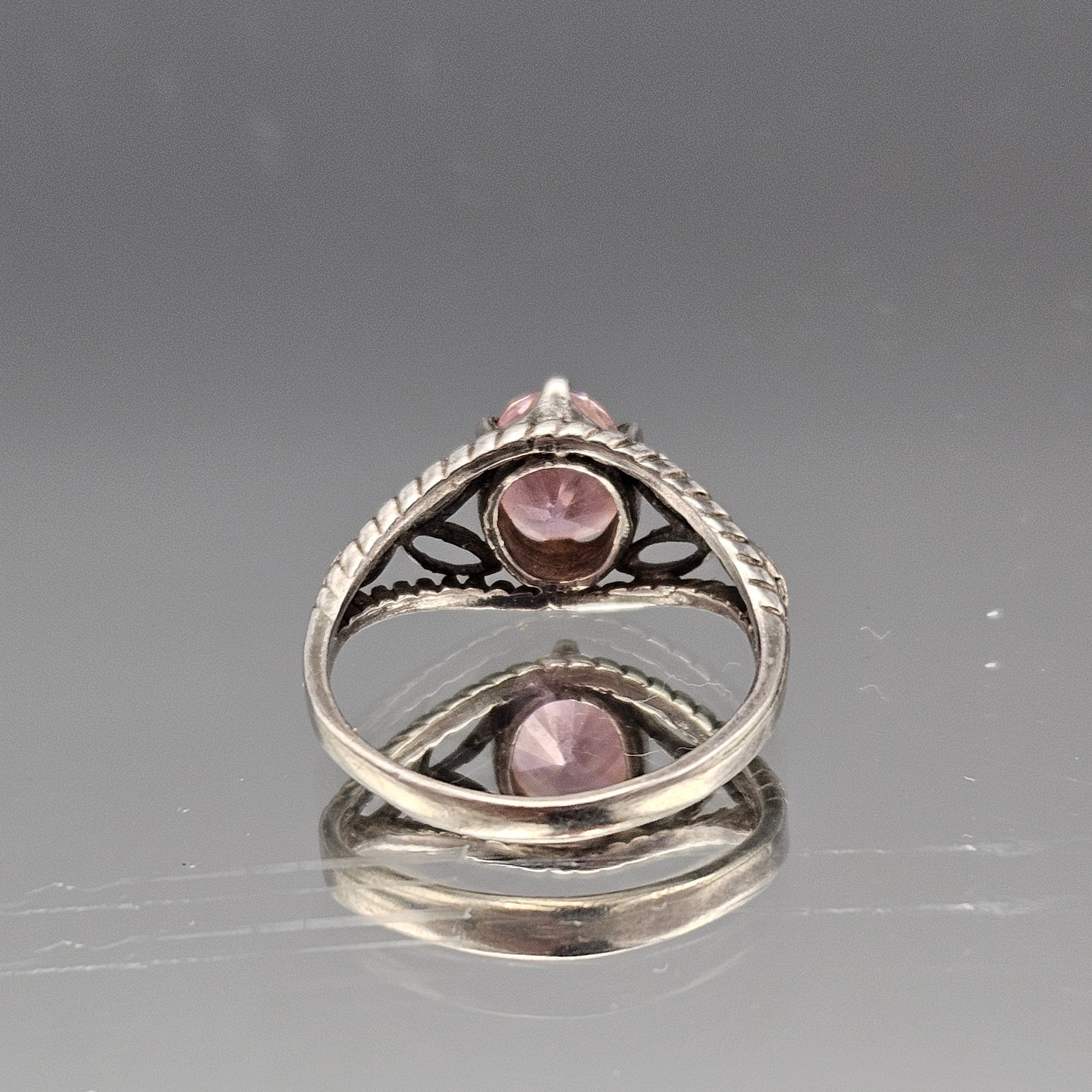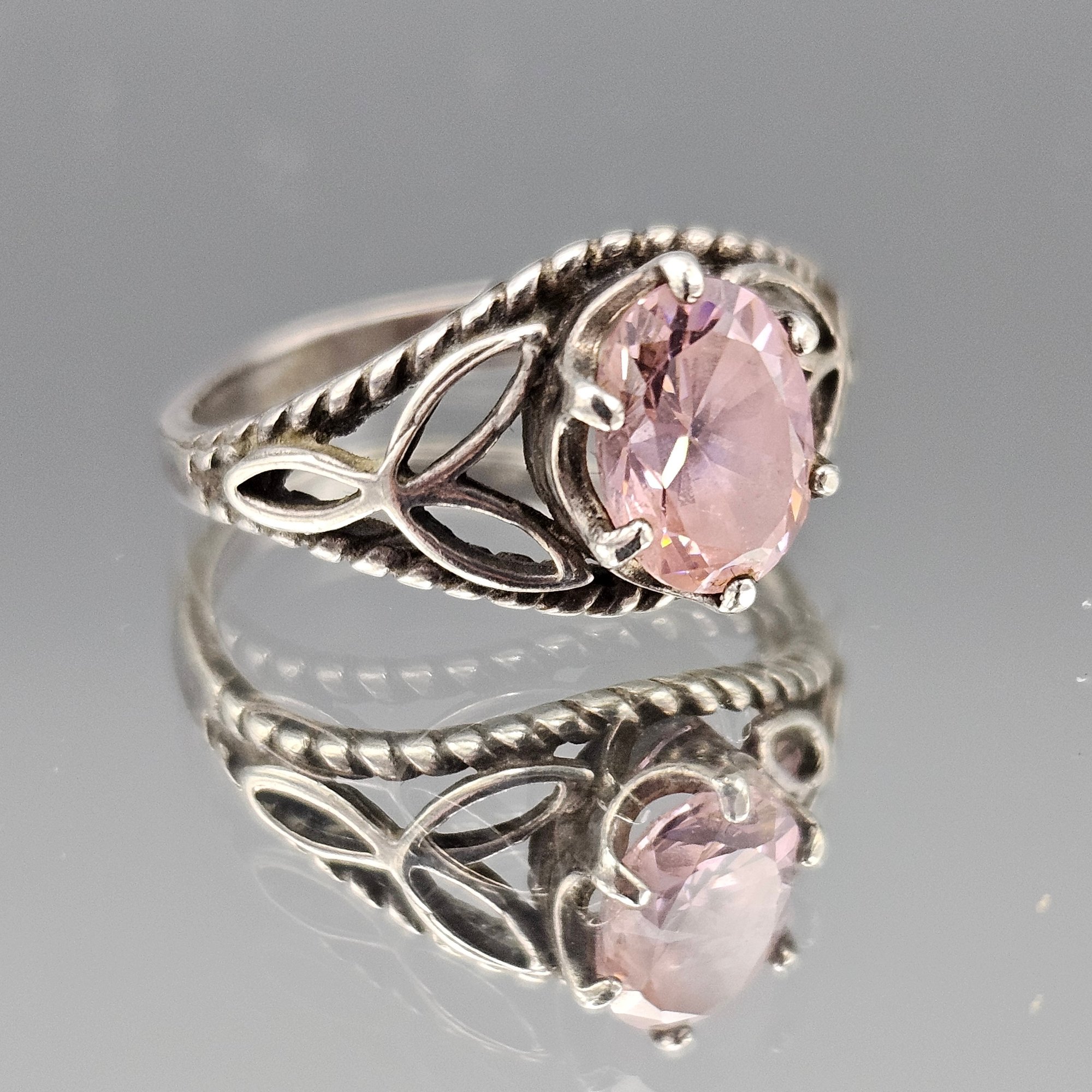 Sterling Silver 925 Filigree Teardrop Ring Pink Oval Stone Size 7