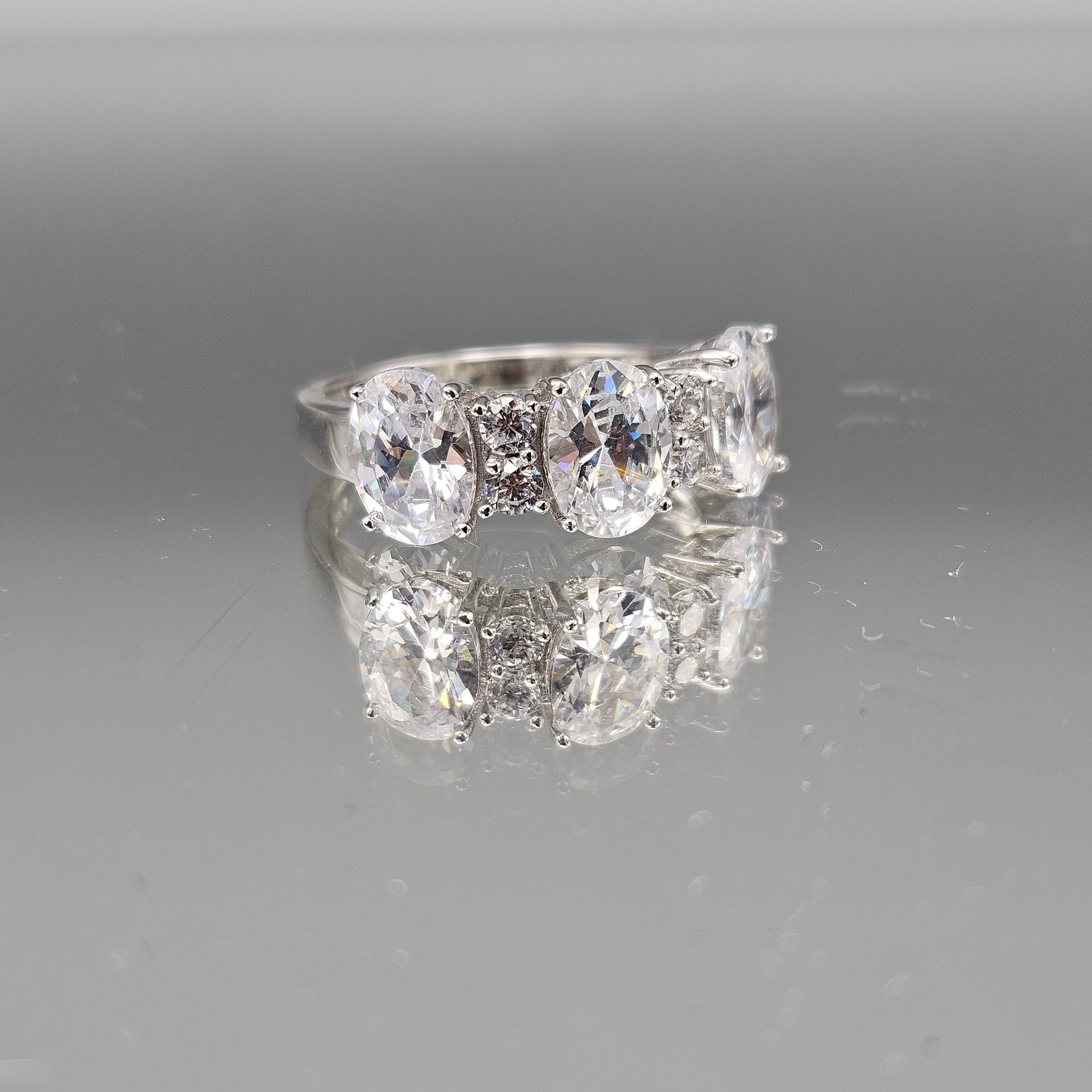 Sterling Silver 925 Multi-Stone Statement Ring Large Oval Setting Size 7.5–8