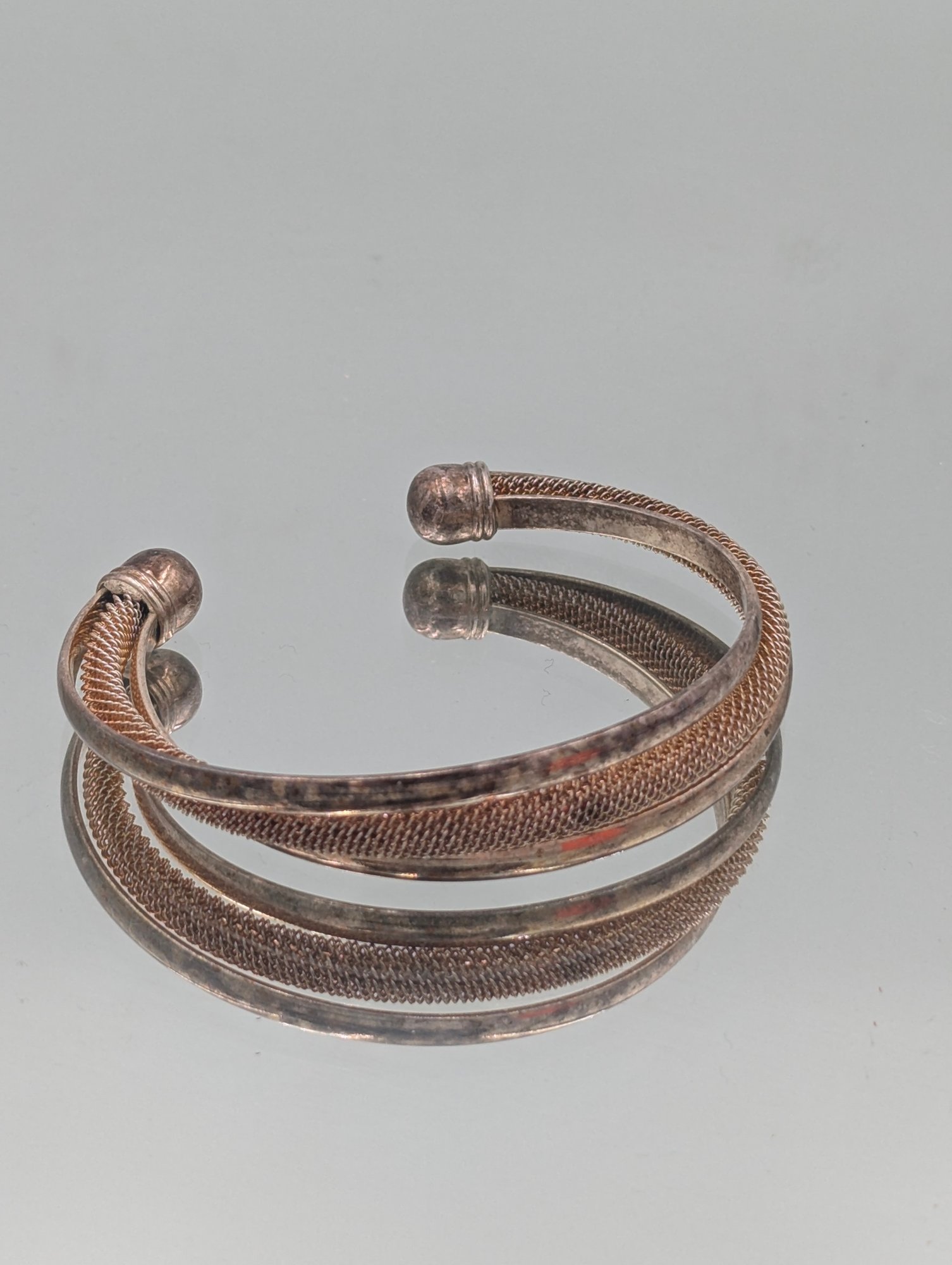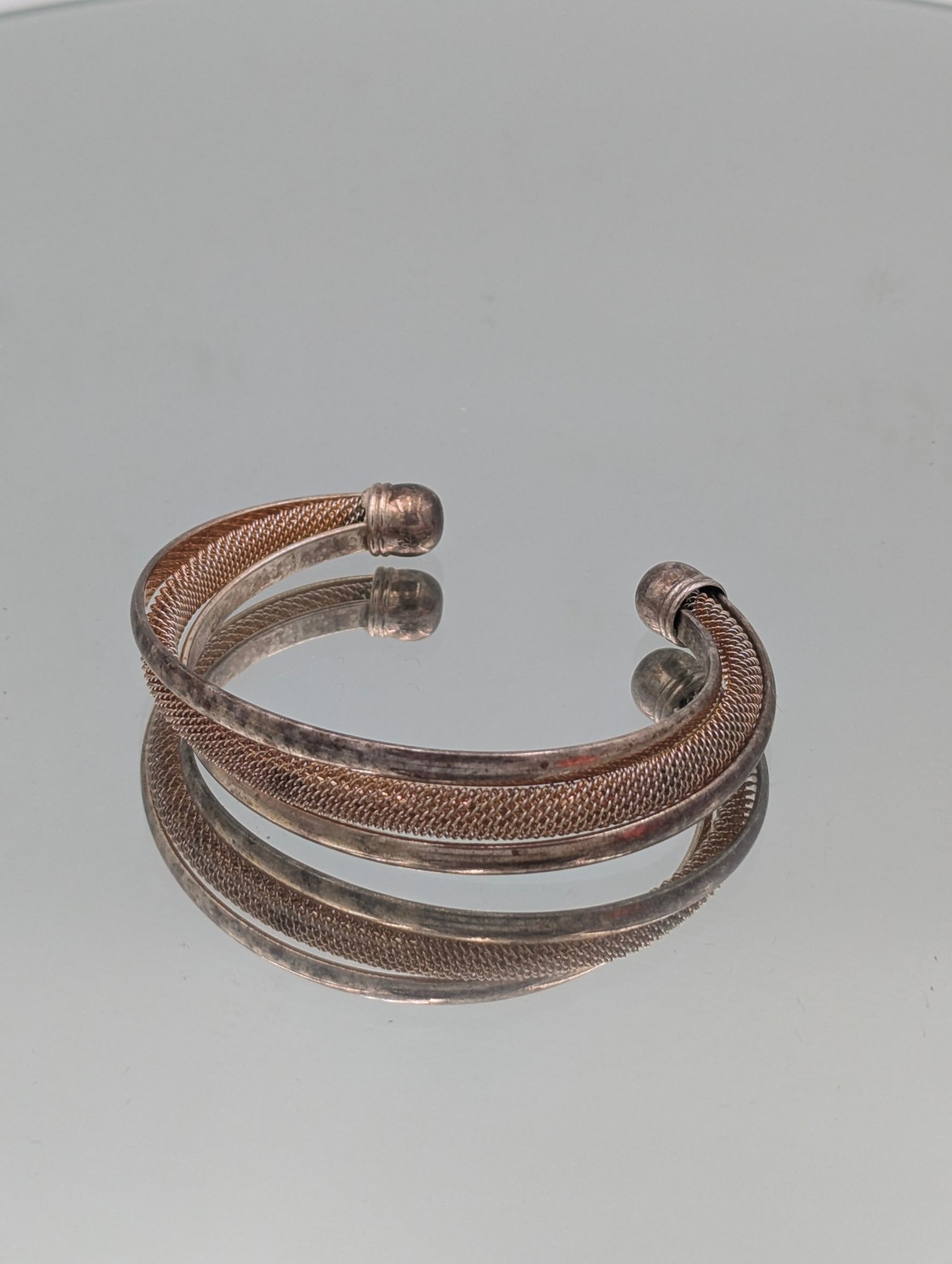 Sterling Silver 925 Multi-Strand Mesh Cuff Bracelet - 28.55g
