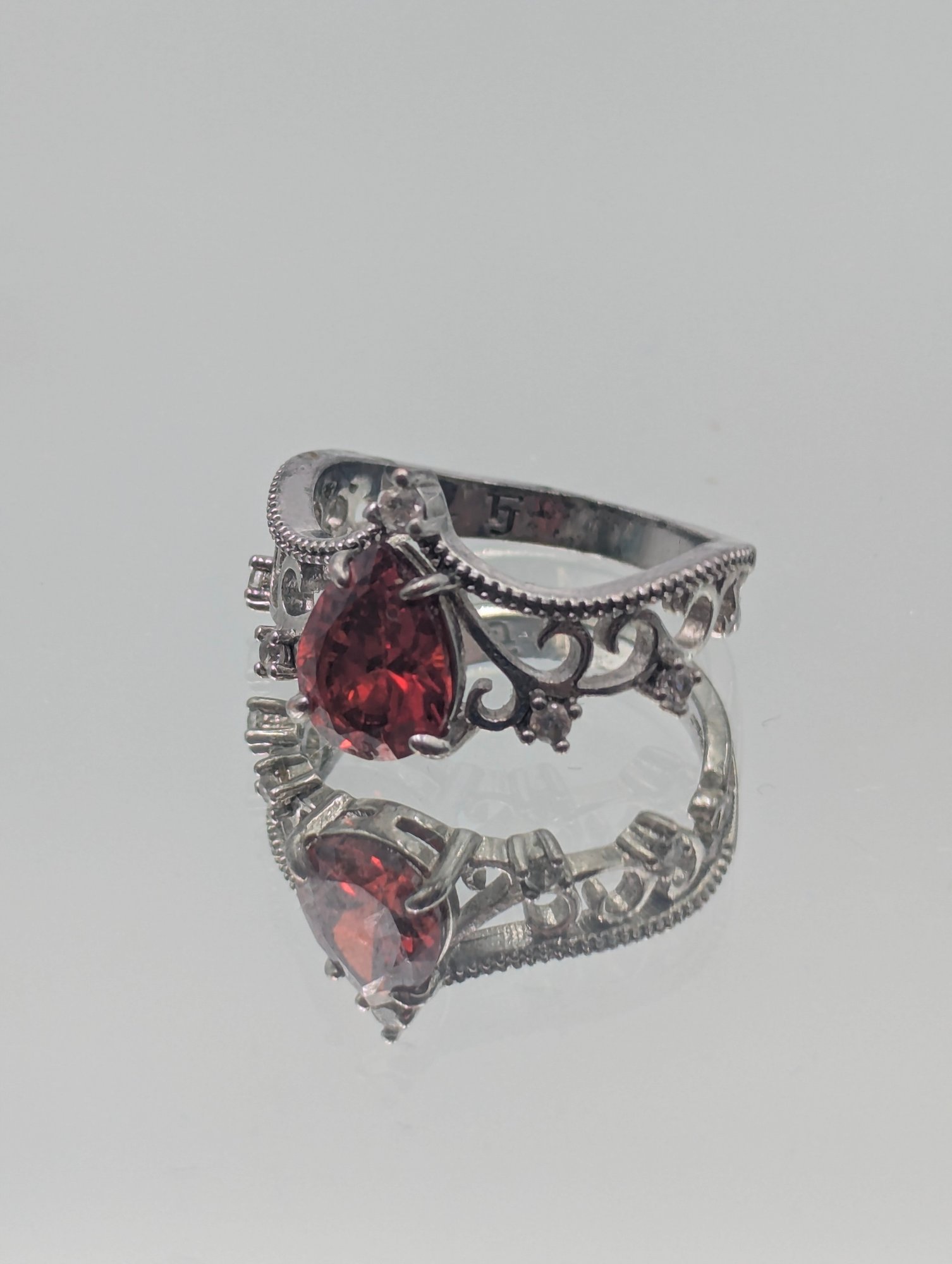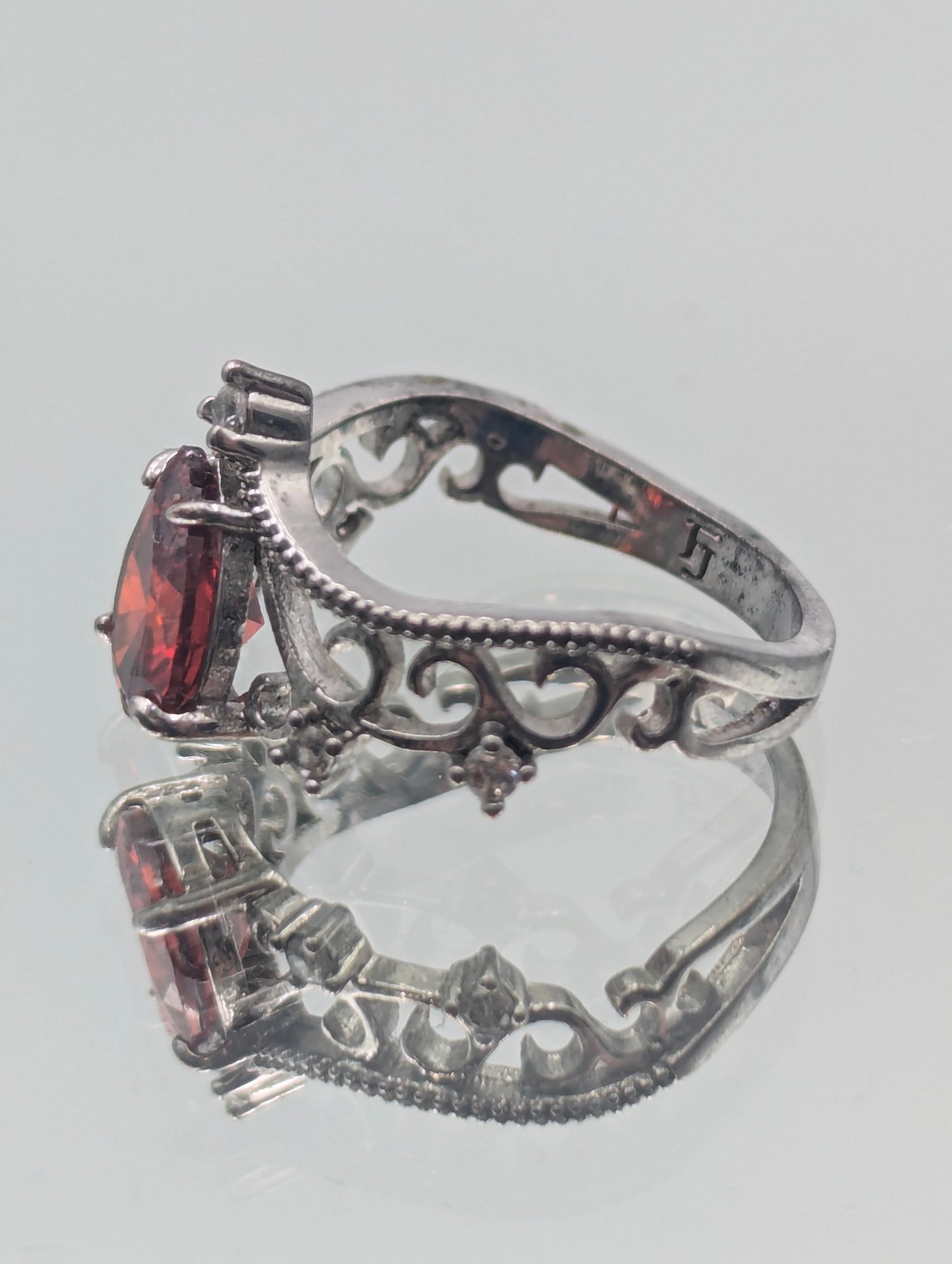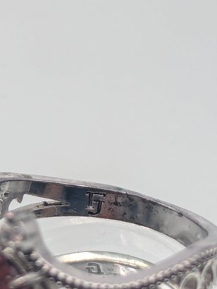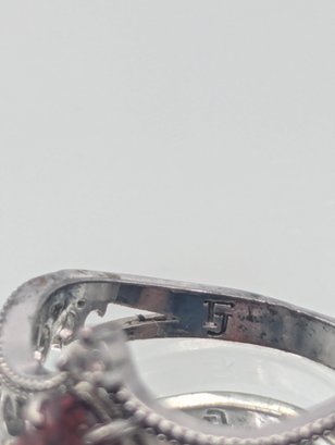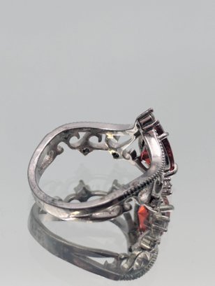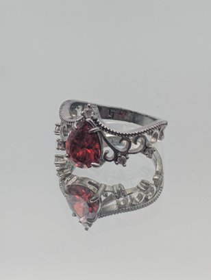 Sterling Silver 925 Pear Cut Red Stone Ring Filigree Size 7