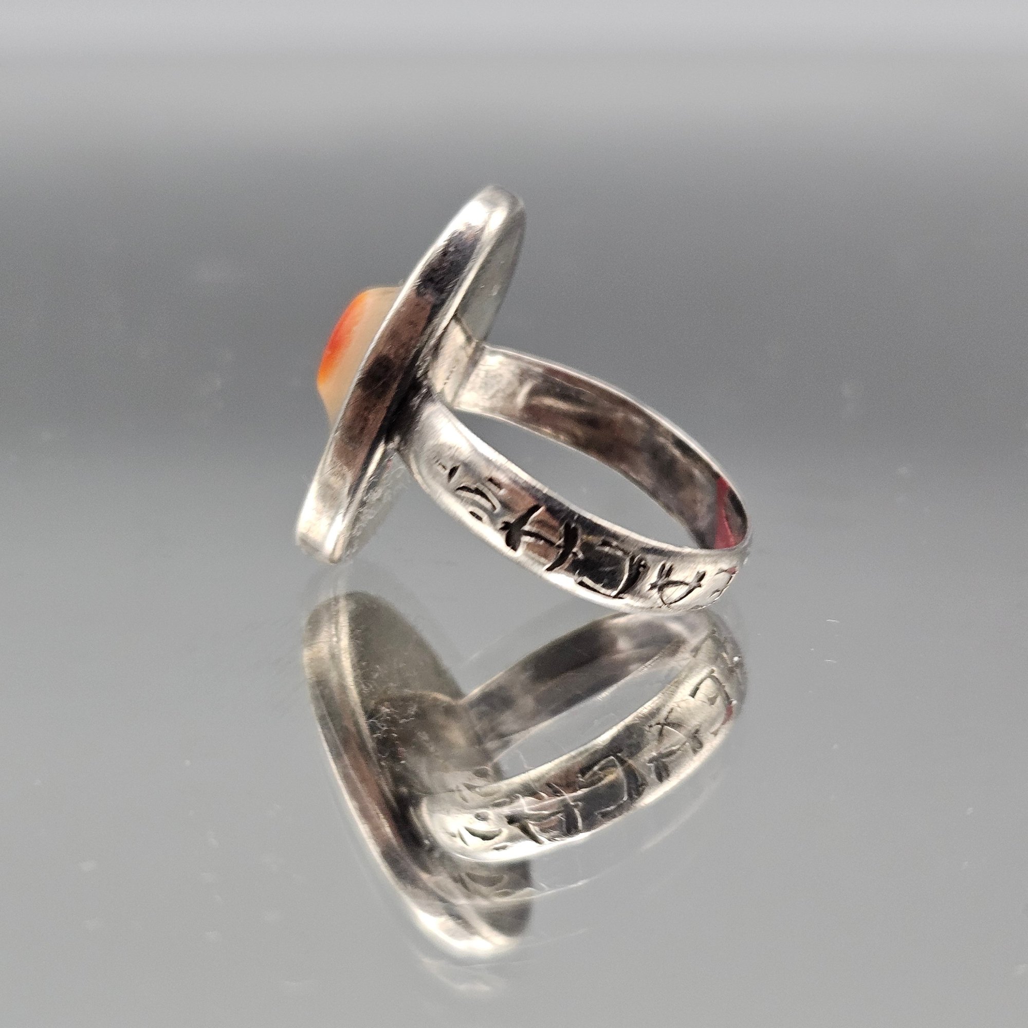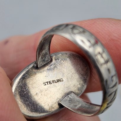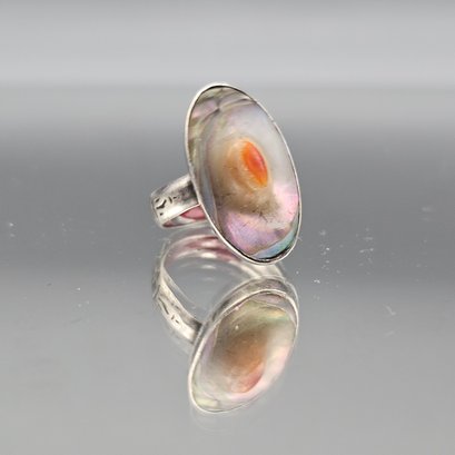 Sterling Silver Abalone Shell Oval Statement Ring – Artisan Modernist Design- Size 6