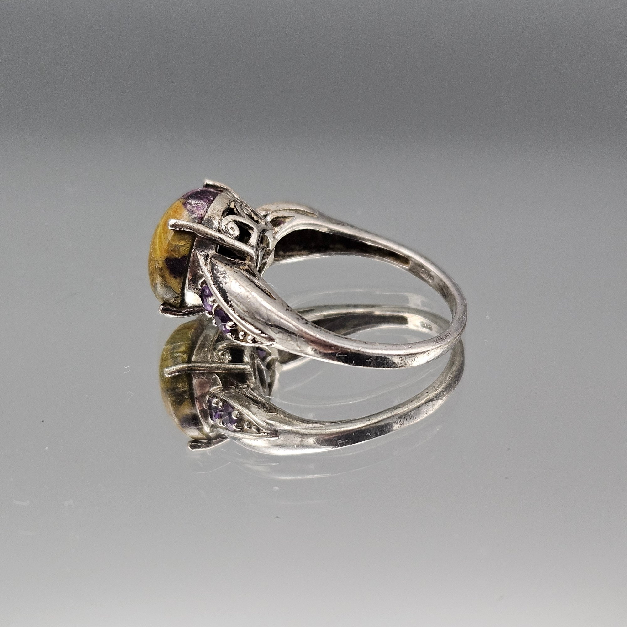 Sterling Silver Artisan Ring Tasmanian Stichtite Serpentine Amethyst
