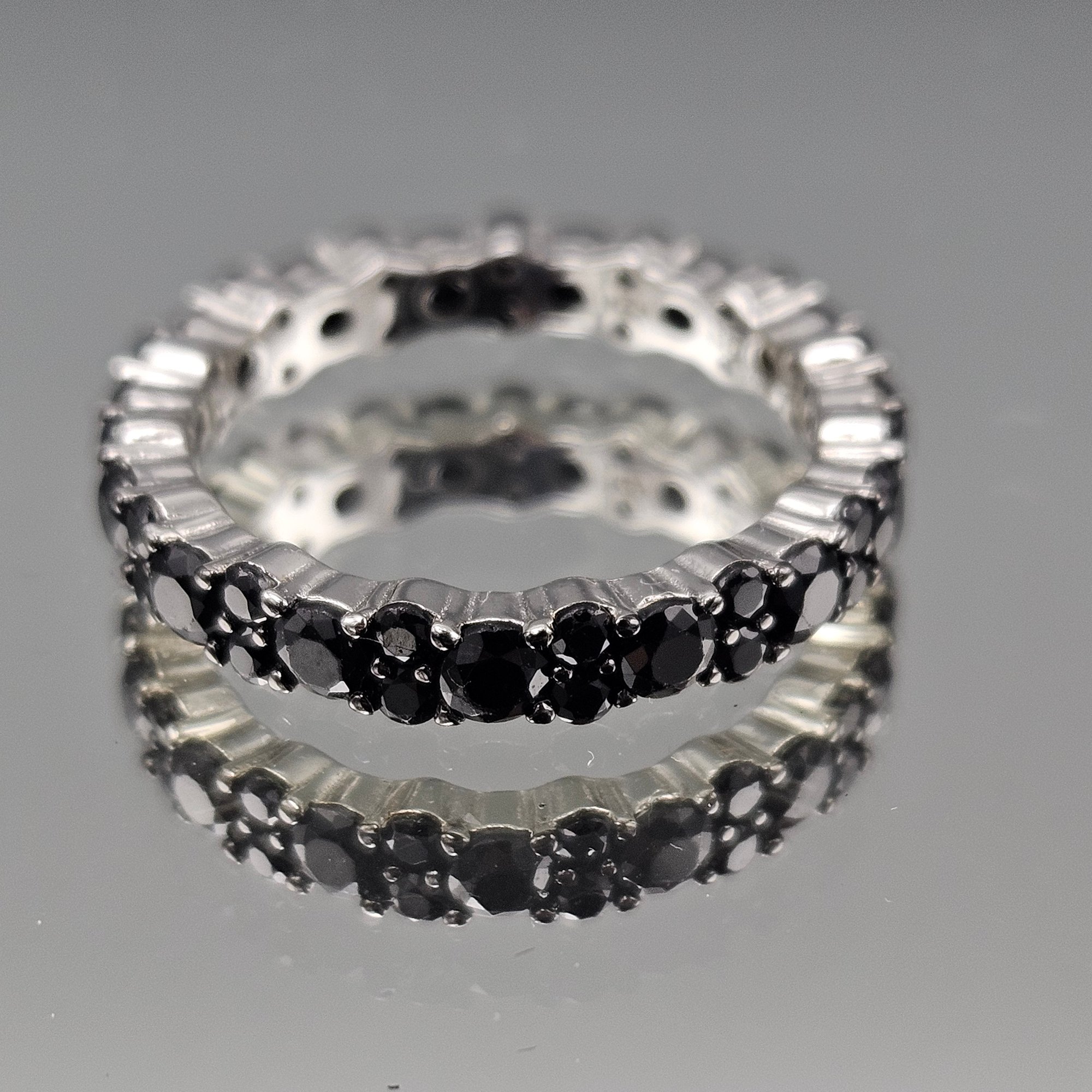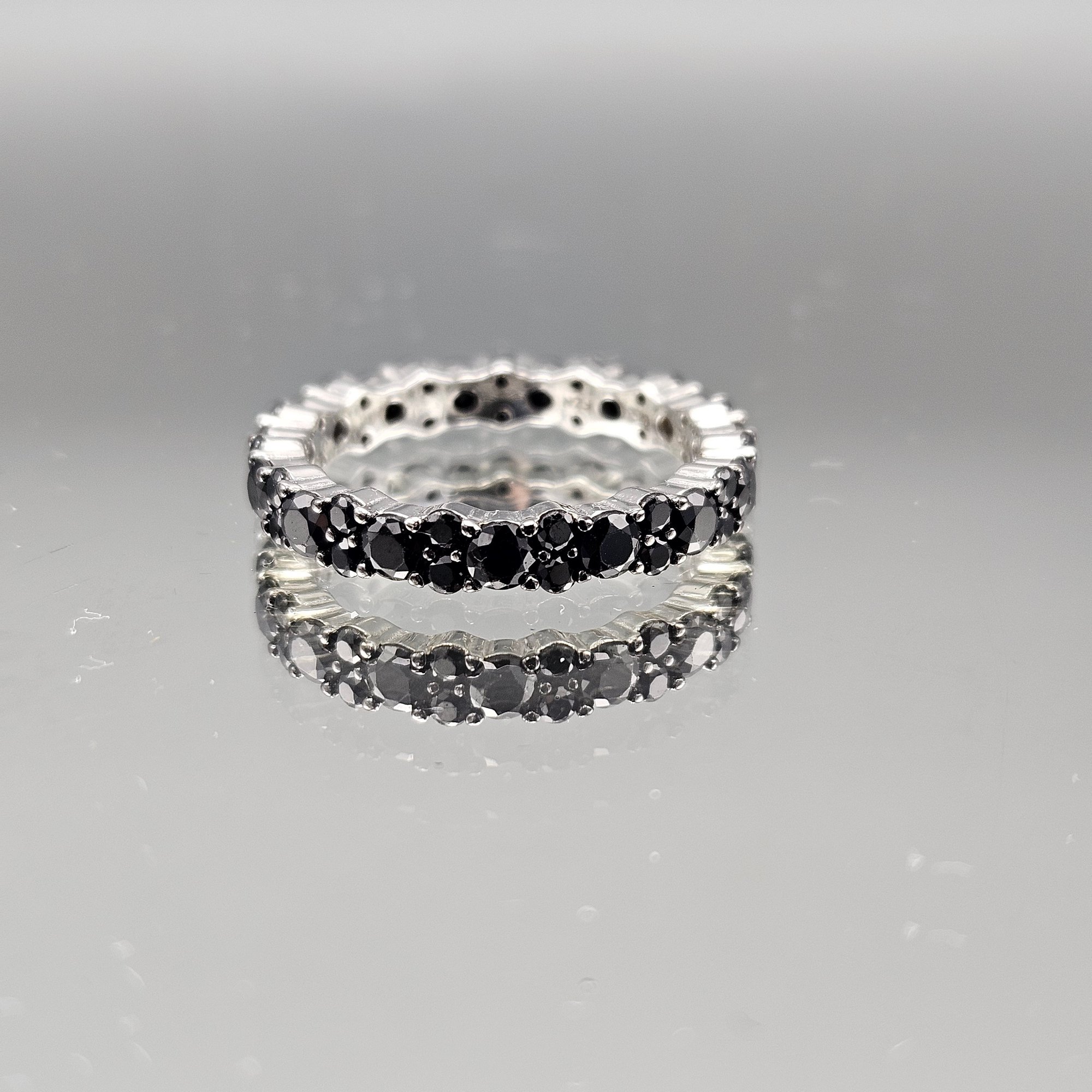 Sterling Silver Black Faceted Stone Eternity Band Ring