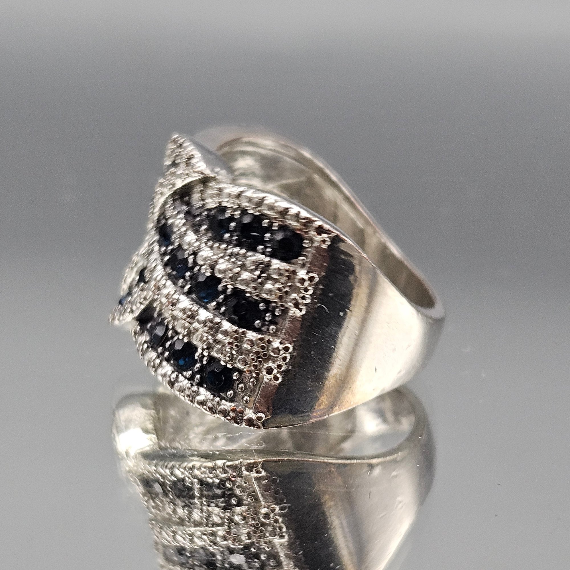 Sterling Silver Black & White Gemstone Cluster Ring