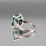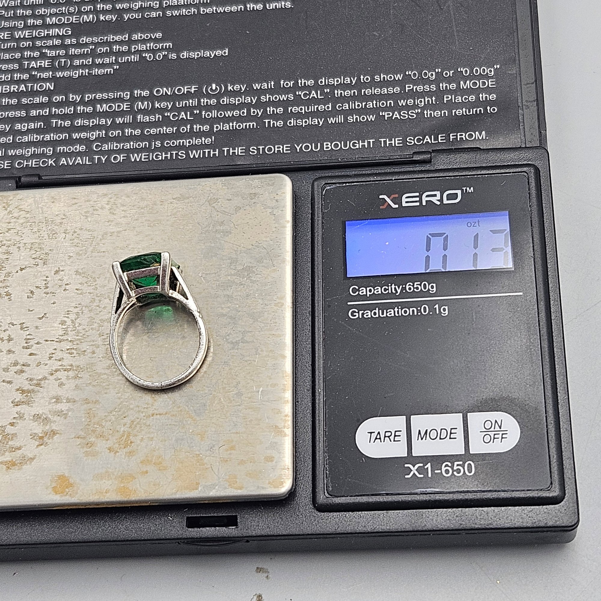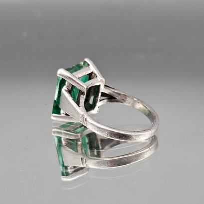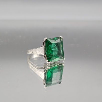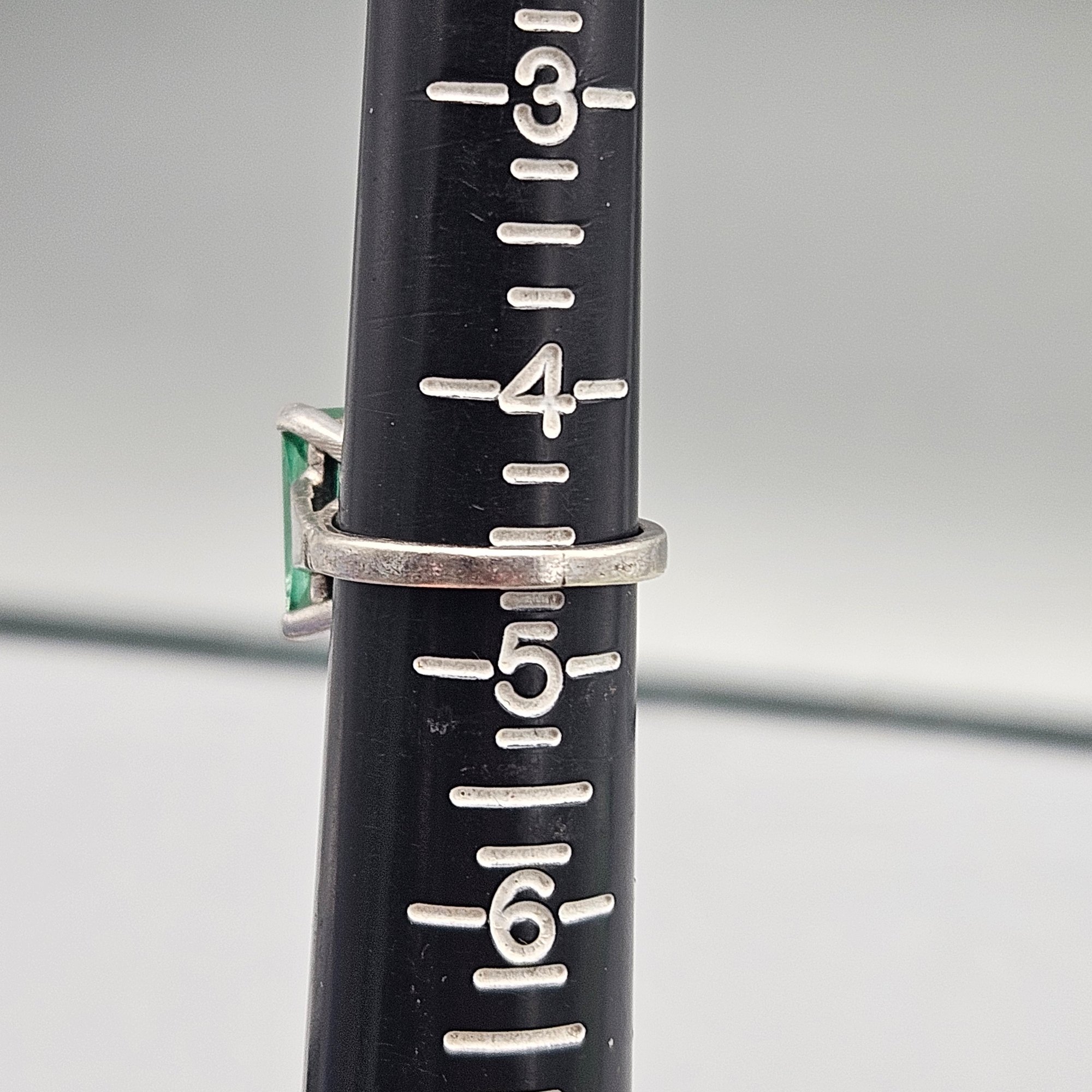Sterling Silver Emerald-Cut Green Glass Solitaire Ring - Size 4.5