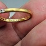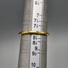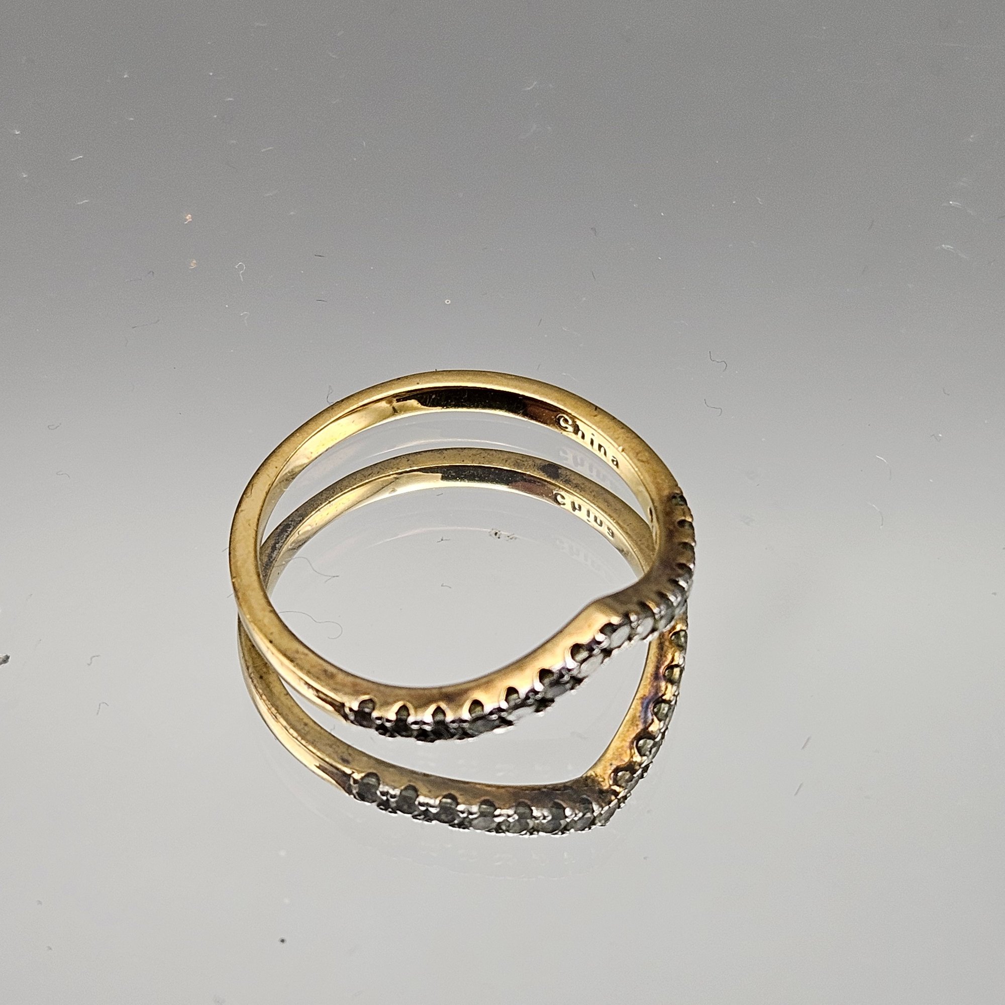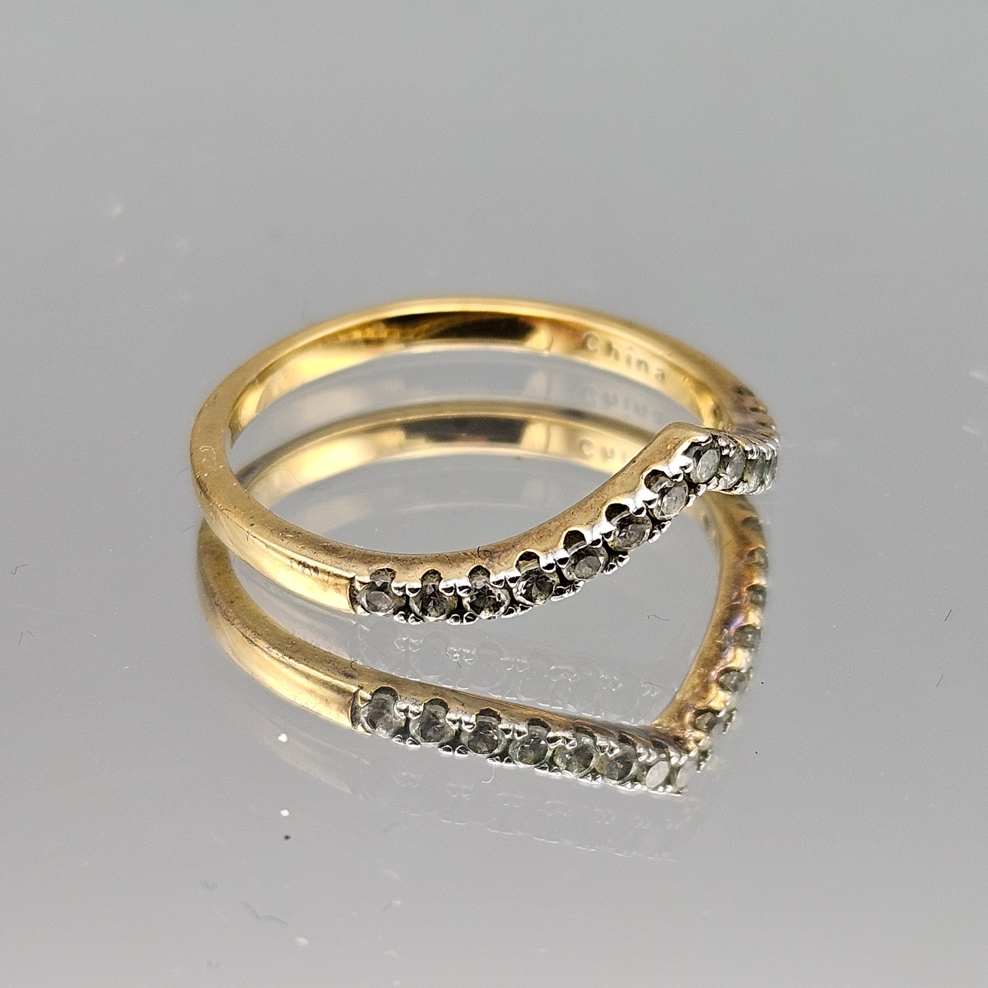 Elegant sterling silver ring with a warm gold-tone finish, featuring a curved band set with sparkling diamond accents. Marked 925 JCL, with a graceful contour perfect for stacking or wearing alone. Size 8