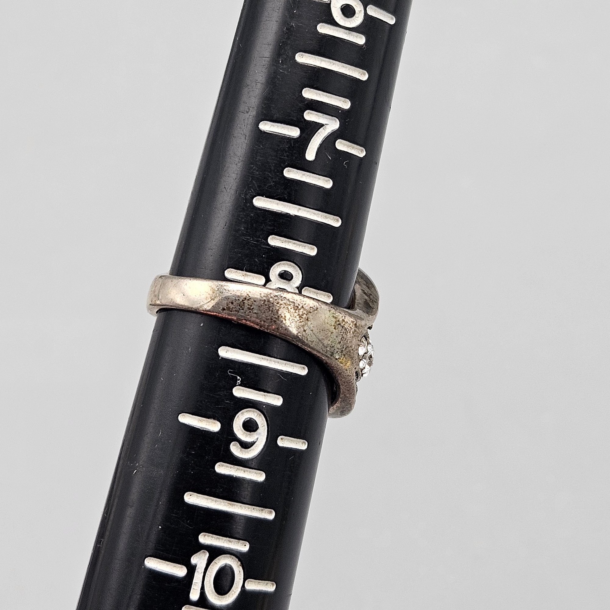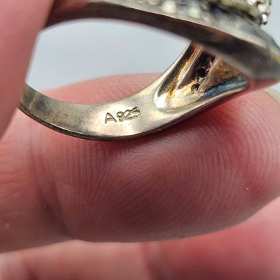 Sterling Silver Marcasite & CZ Statement Ring - Size 8