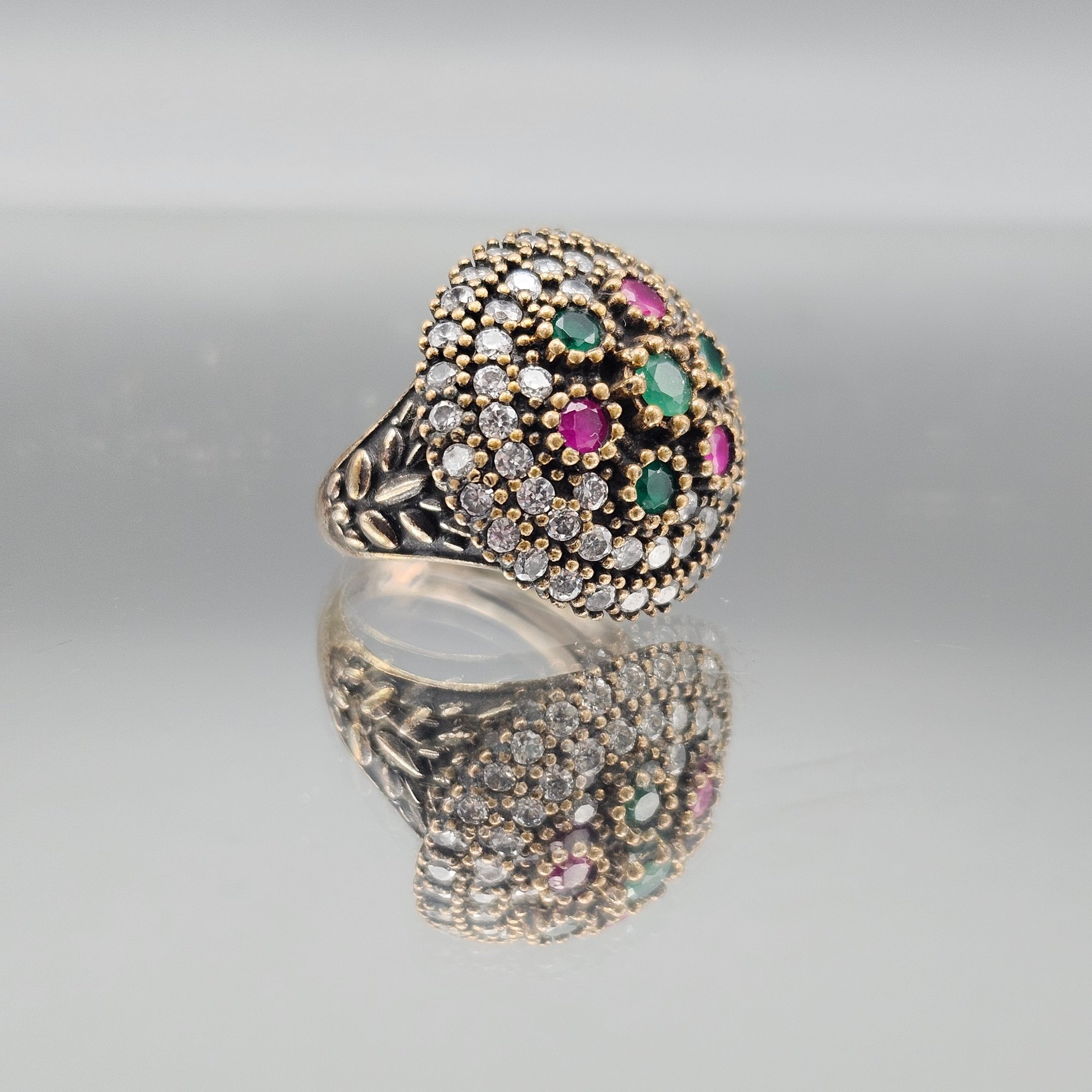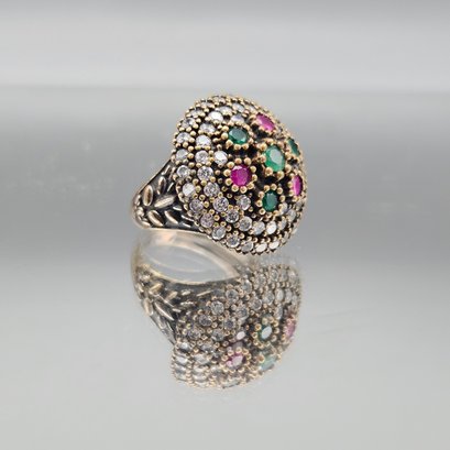 Sterling Silver Multi-Gemstone Dome Ring Size 8.5