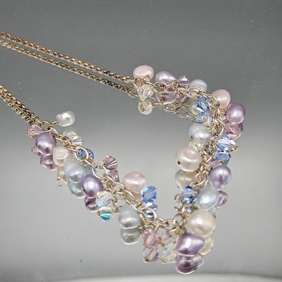 Sterling Silver Multi-Strand Freshwater Pearl & Swarovski Crystal Cluster Necklace