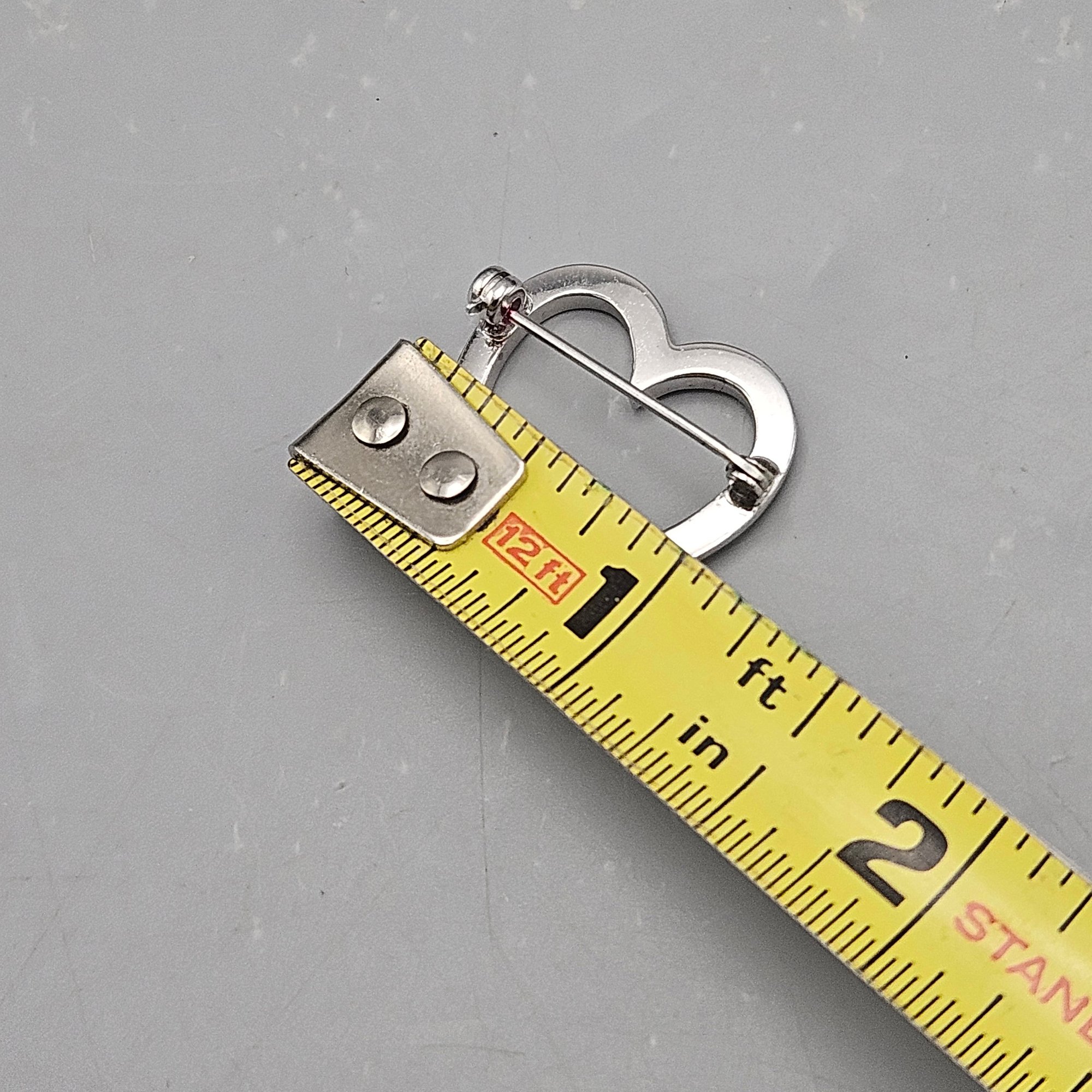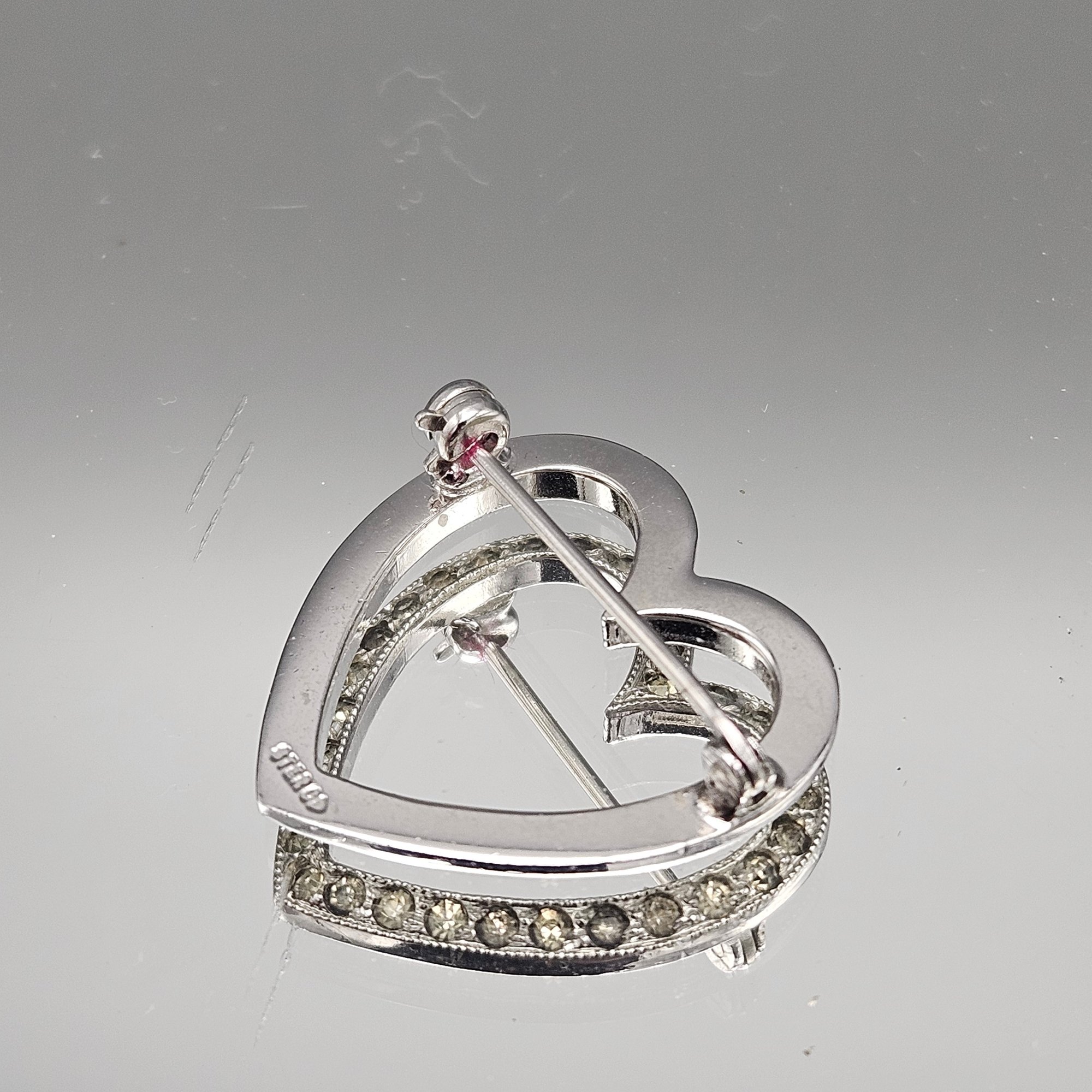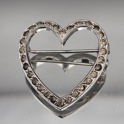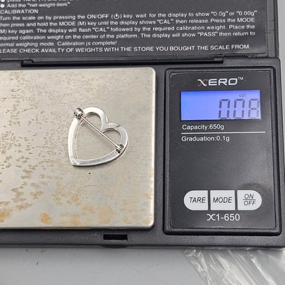Sterling Silver Open Heart Rhinestone Brooch Pin - 0.08 Ozt