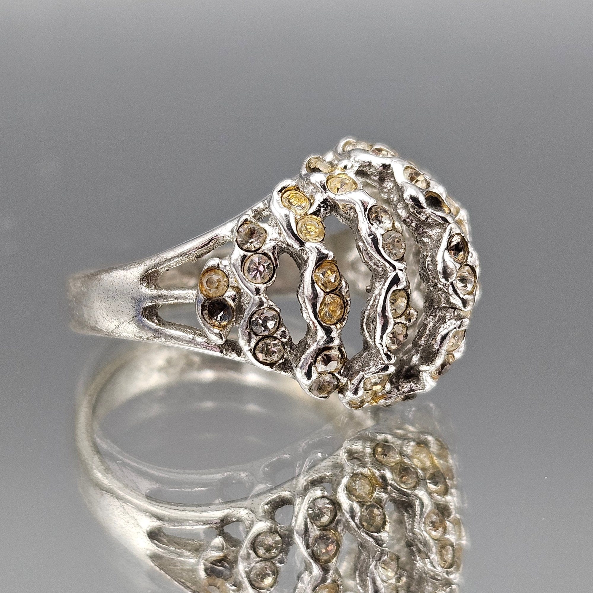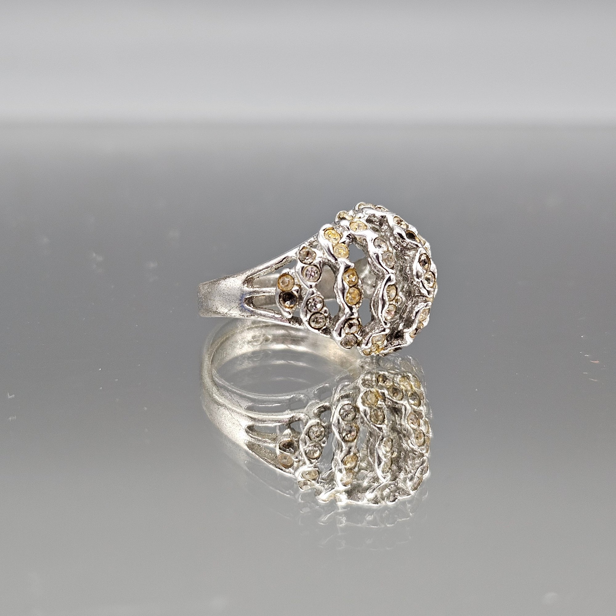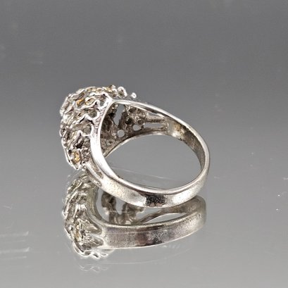 Sterling Silver Pav Champagne CZ Filigree Dome Ring - Size 6