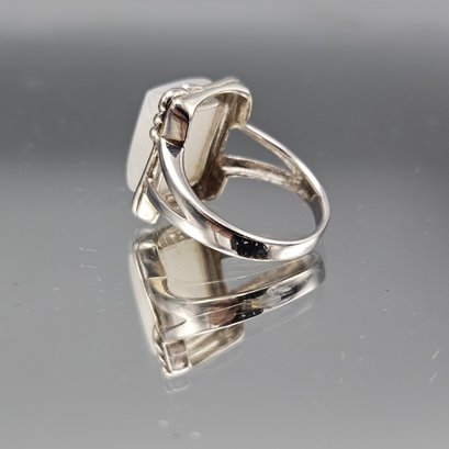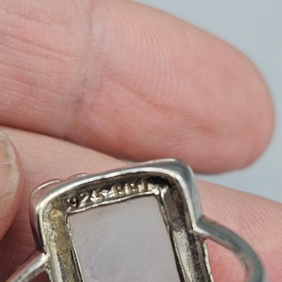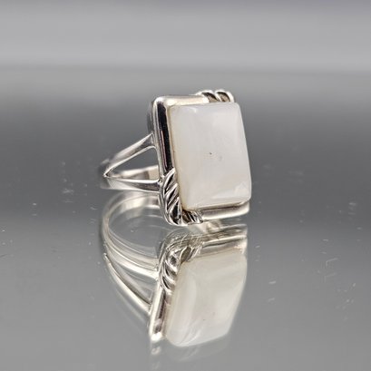 Sterling Silver Rectangular White Cabochon Style Ring Rope Accent Size 7