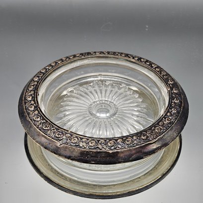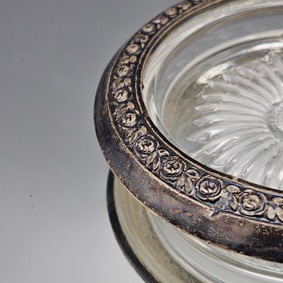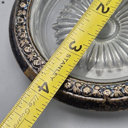 Sterling Silver Rimmed Glass Ashtray Floral Rose Repousse 4"