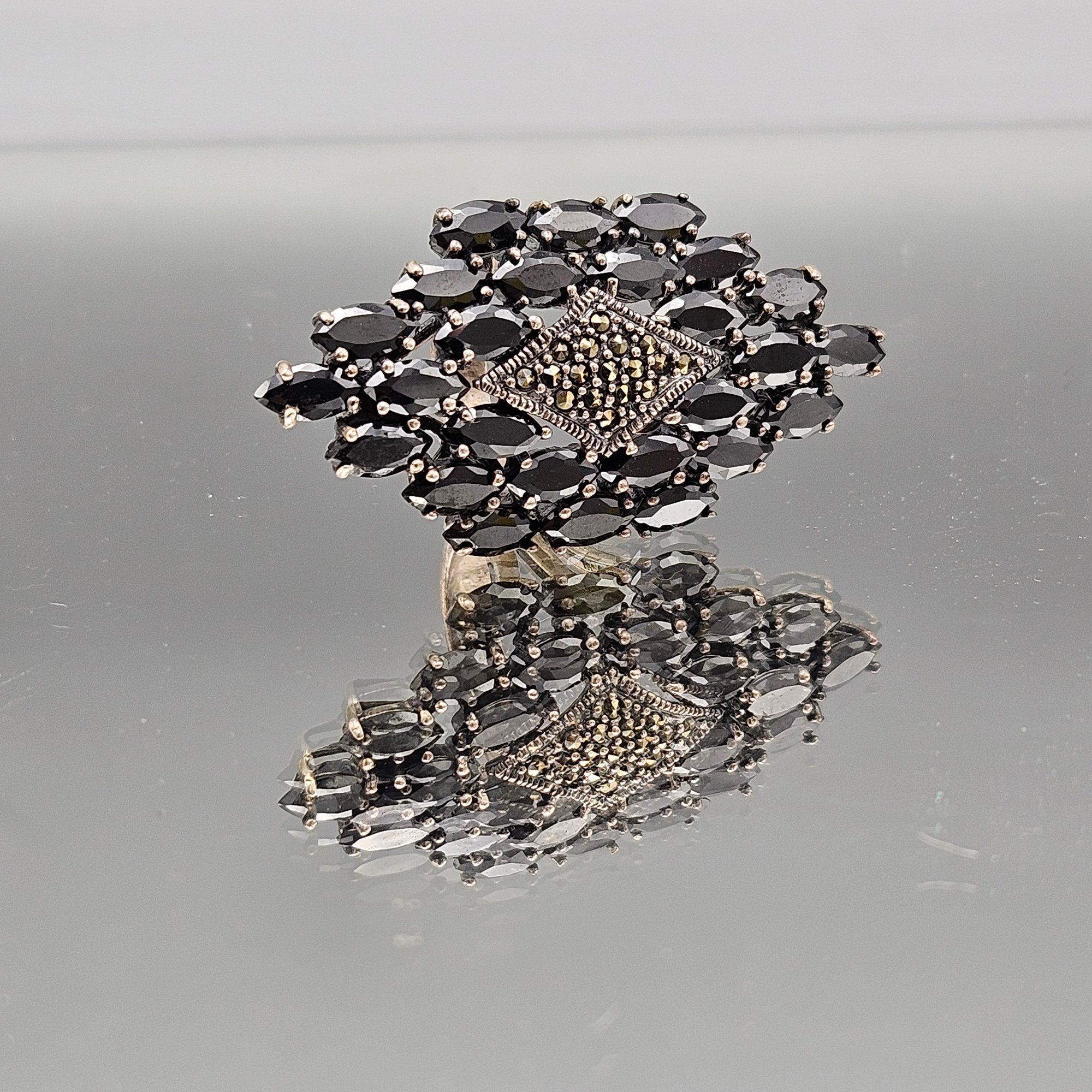 Sterling Silver Ring with black stones