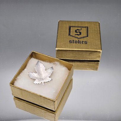 Stokes Sterling Silver Maple Leaf Brooch In Original Gift Box - 0.04ozt