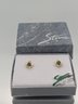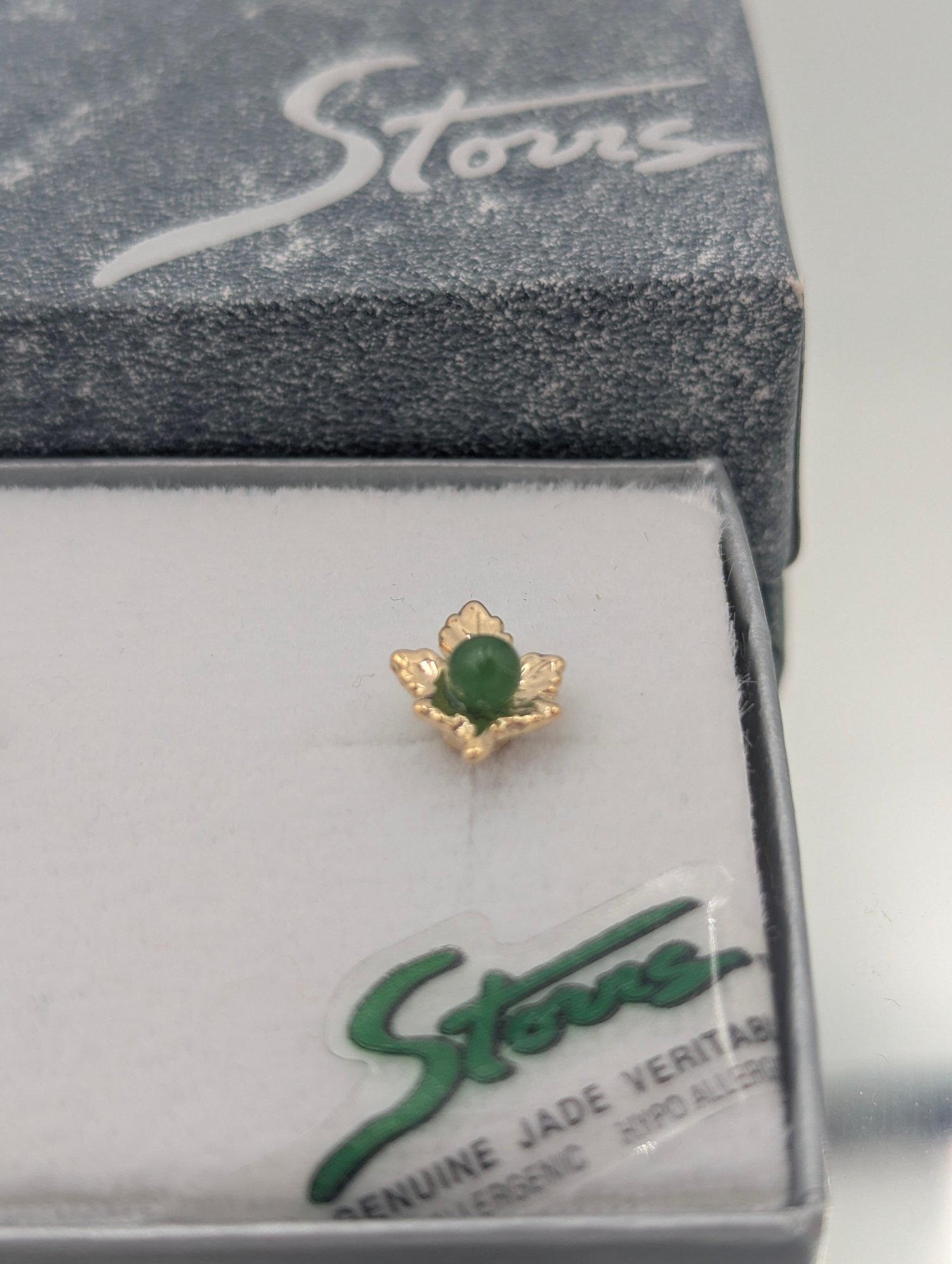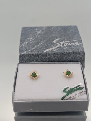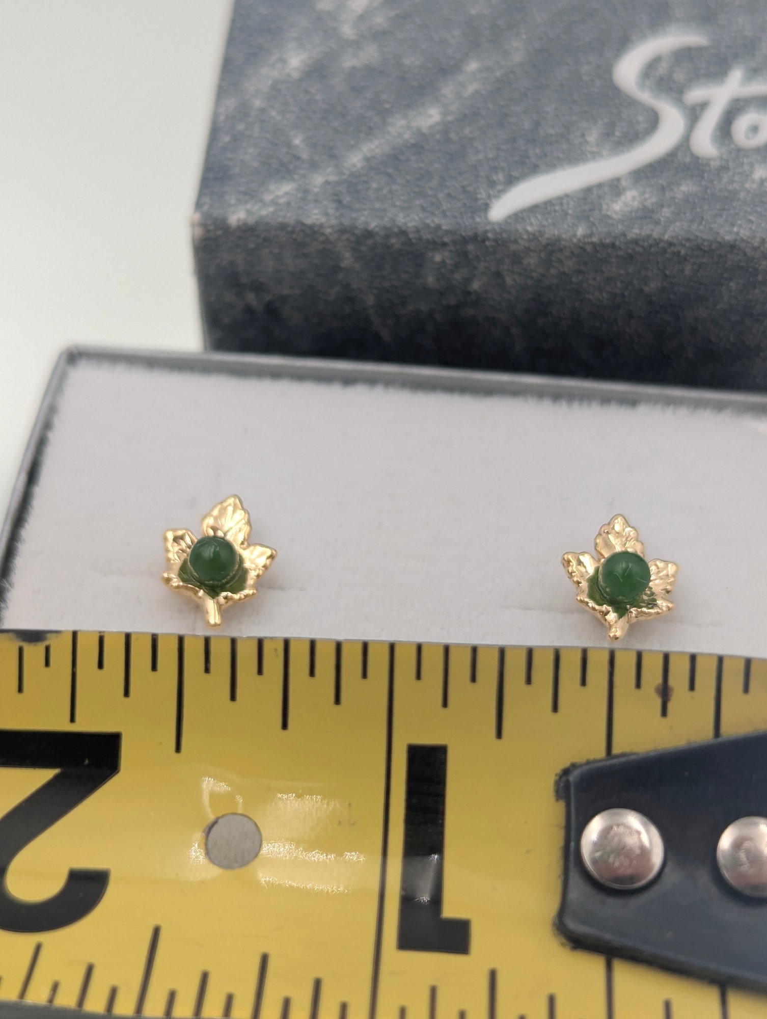 Storrs Genuine Jade Leaf Stud Earrings Gold Tone With Box