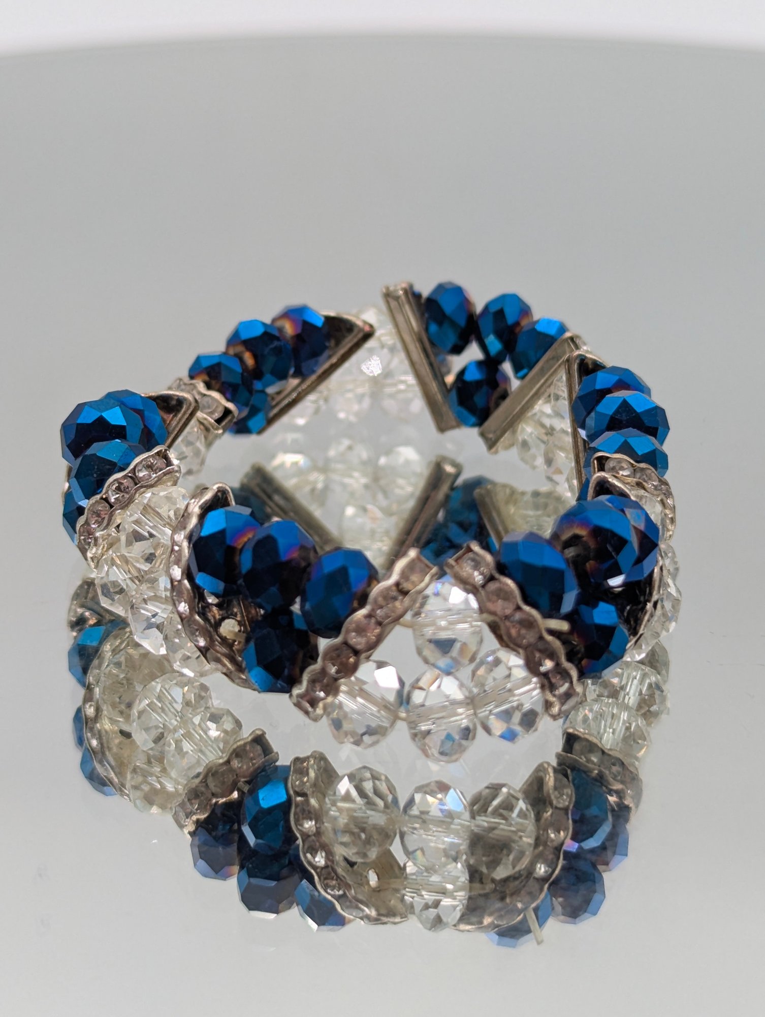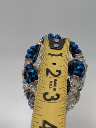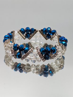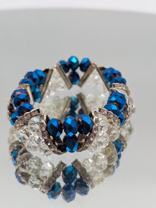 Stretch Bracelet With Blue And Clear Faceted Beads