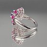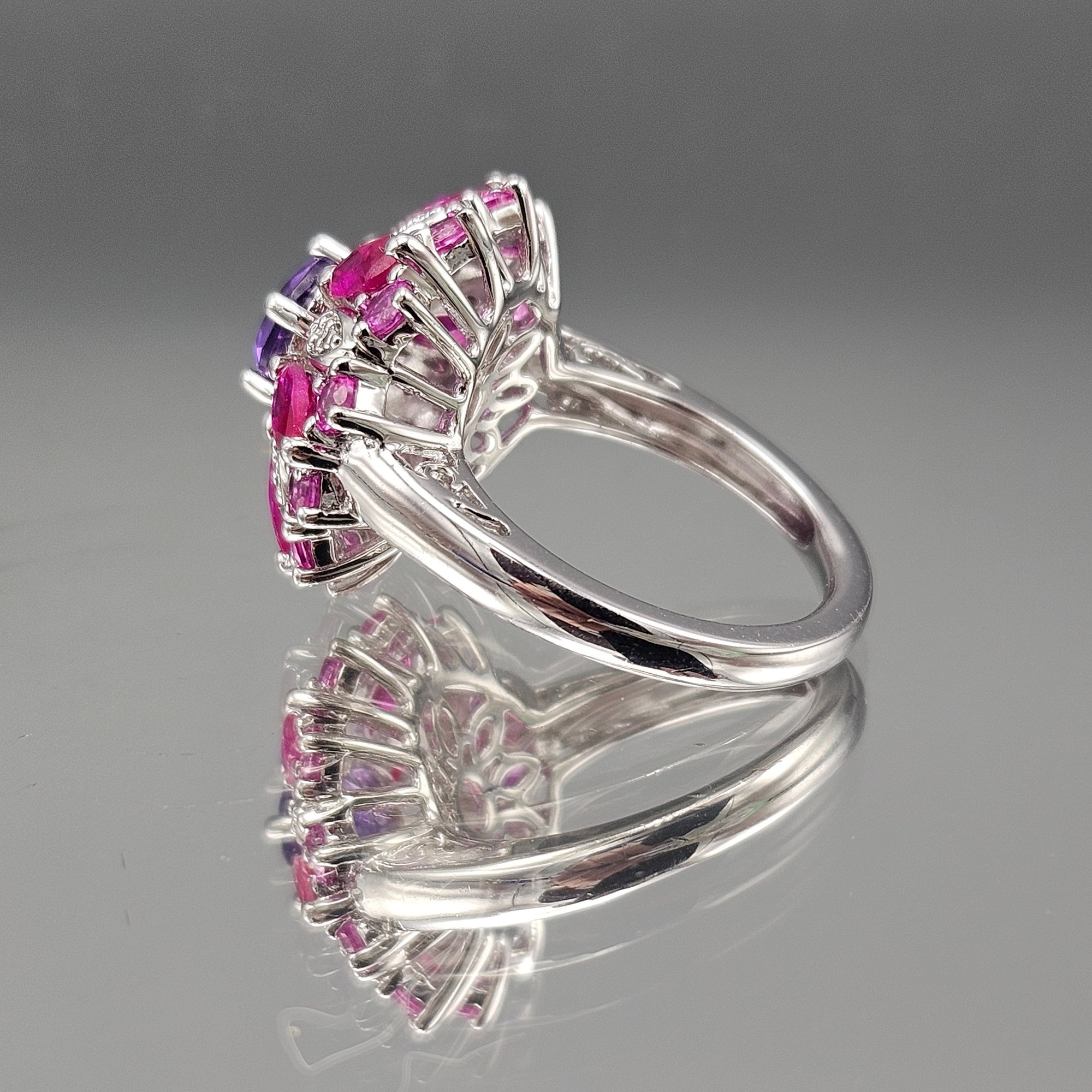 SUN 925 Sterling Silver Amethyst? & Ruby? Floral Cluster Ring - Size 7
