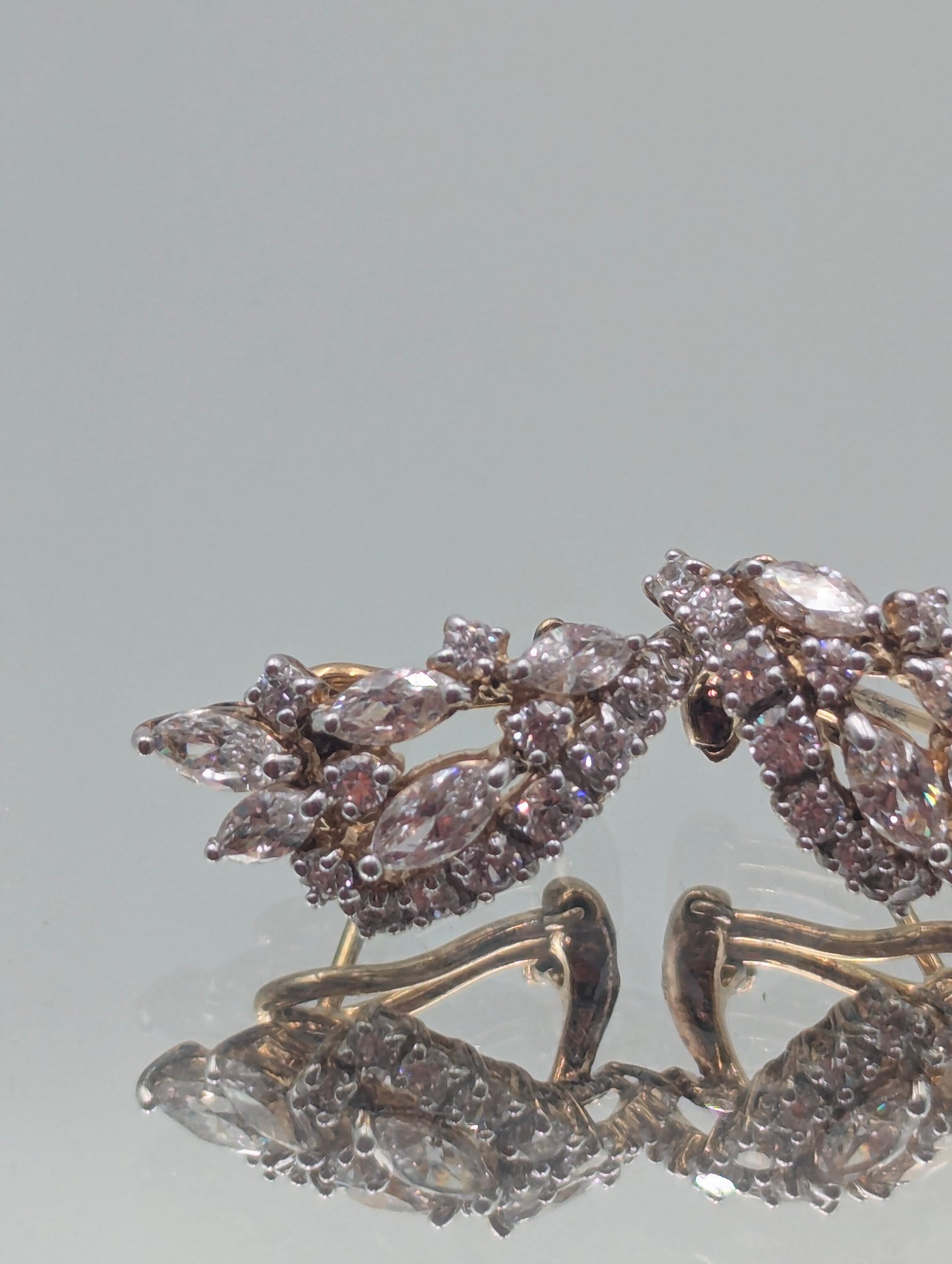 Intage Marquise-Cut CZ Cluster Crawler Earrings In Gold Tone