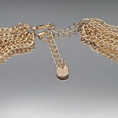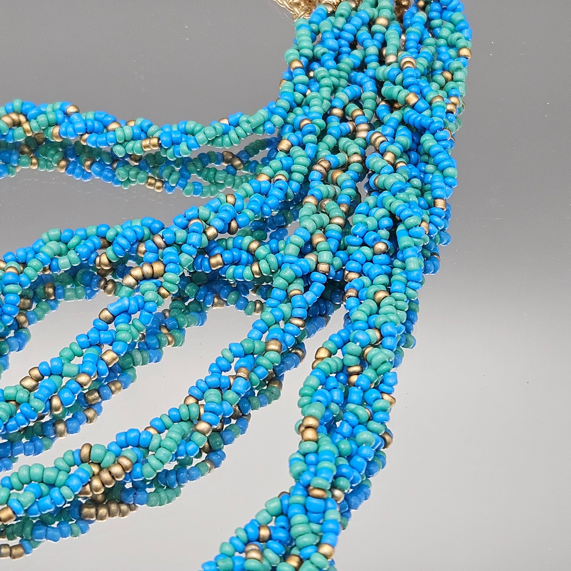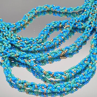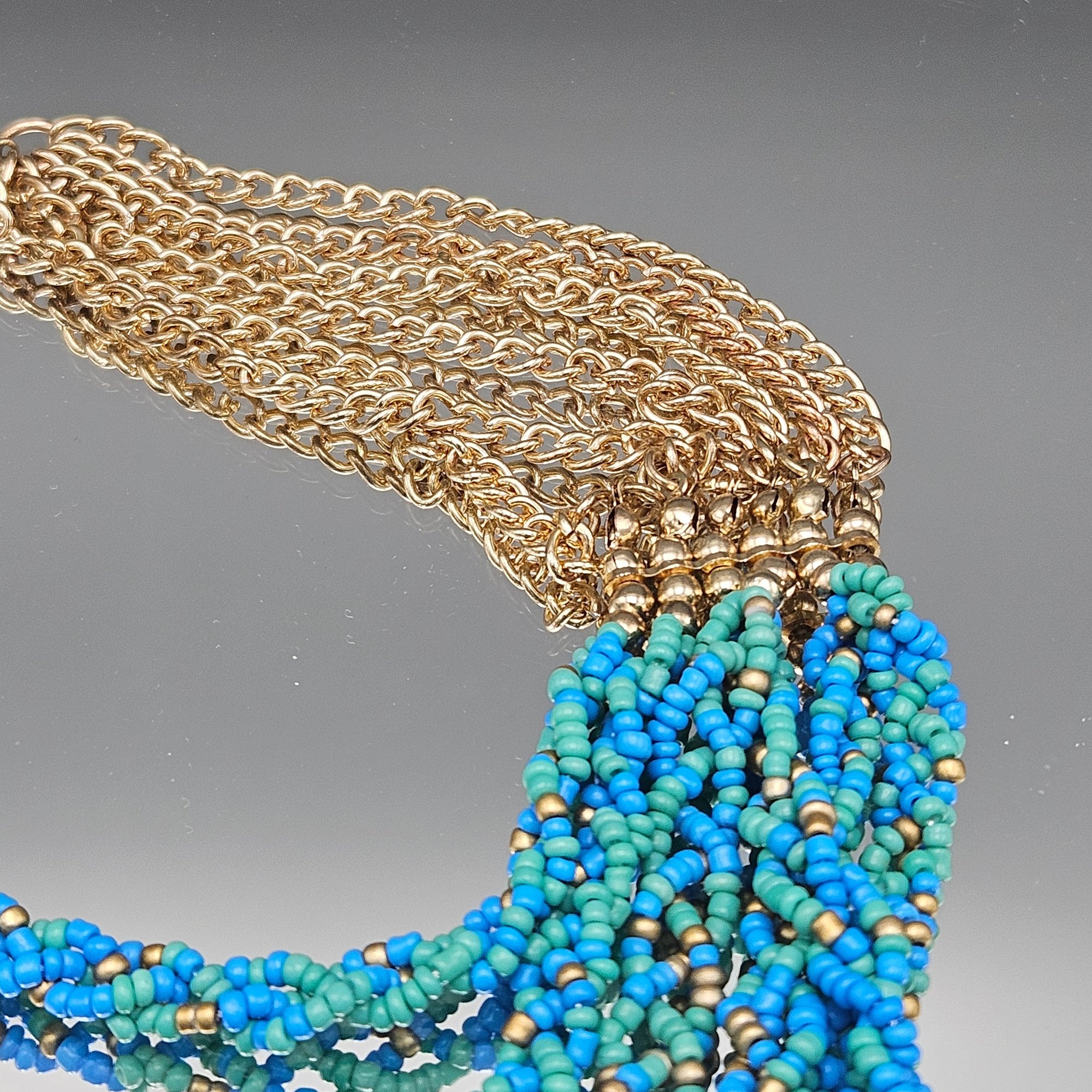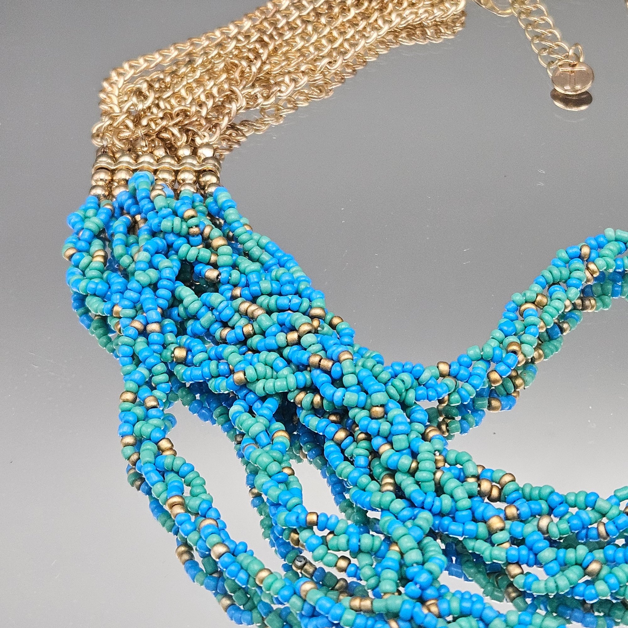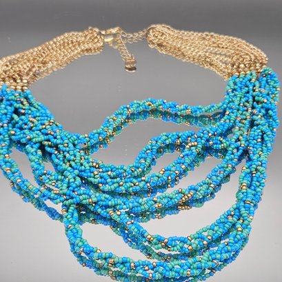 Talbots Statement Necklace Gold Chain W/ Blue Green Seed Beads
