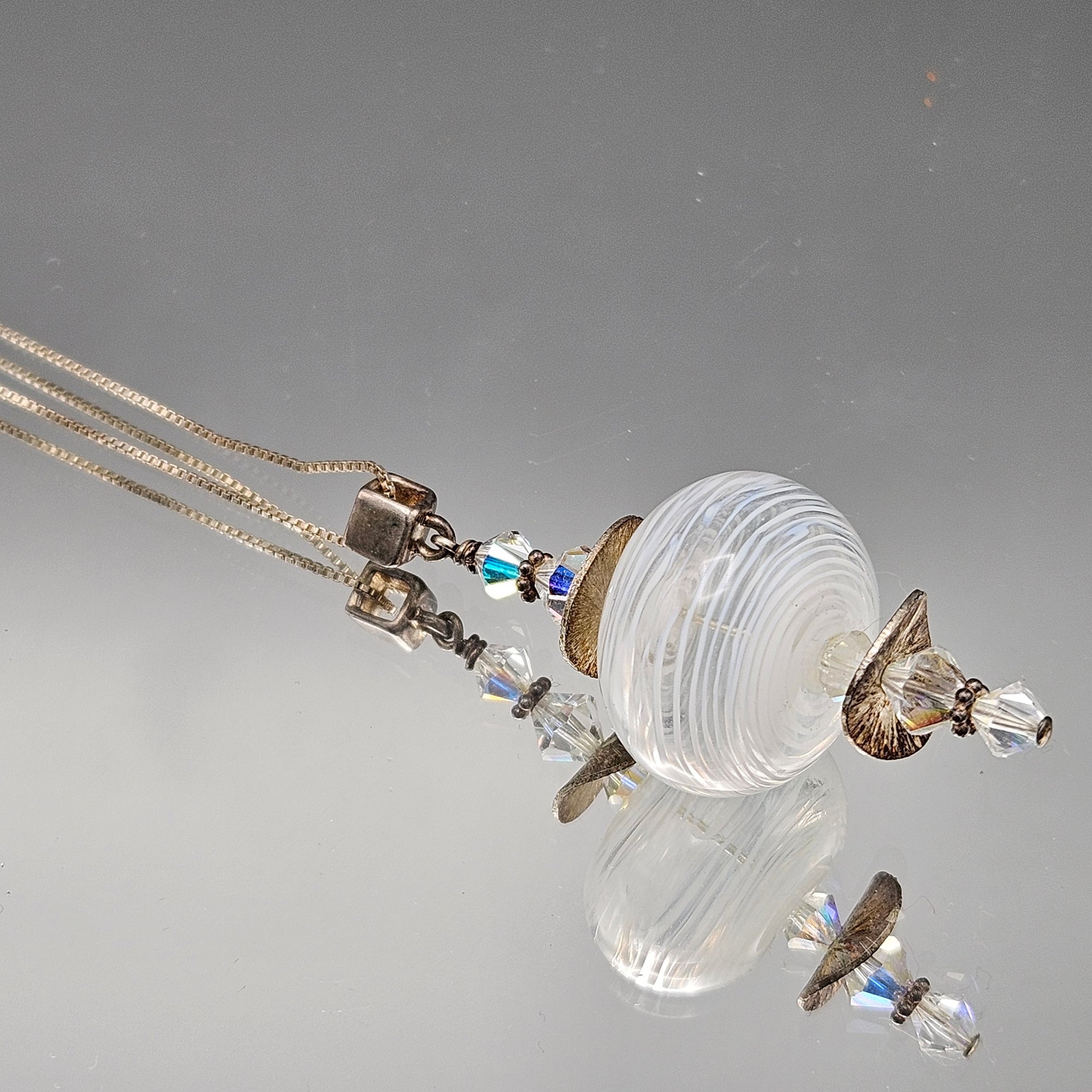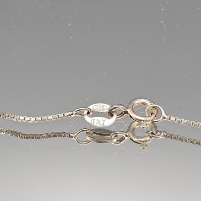 Italian 925 Sterling Silver Box Chain Necklace with Swirl Art Glass Bead