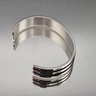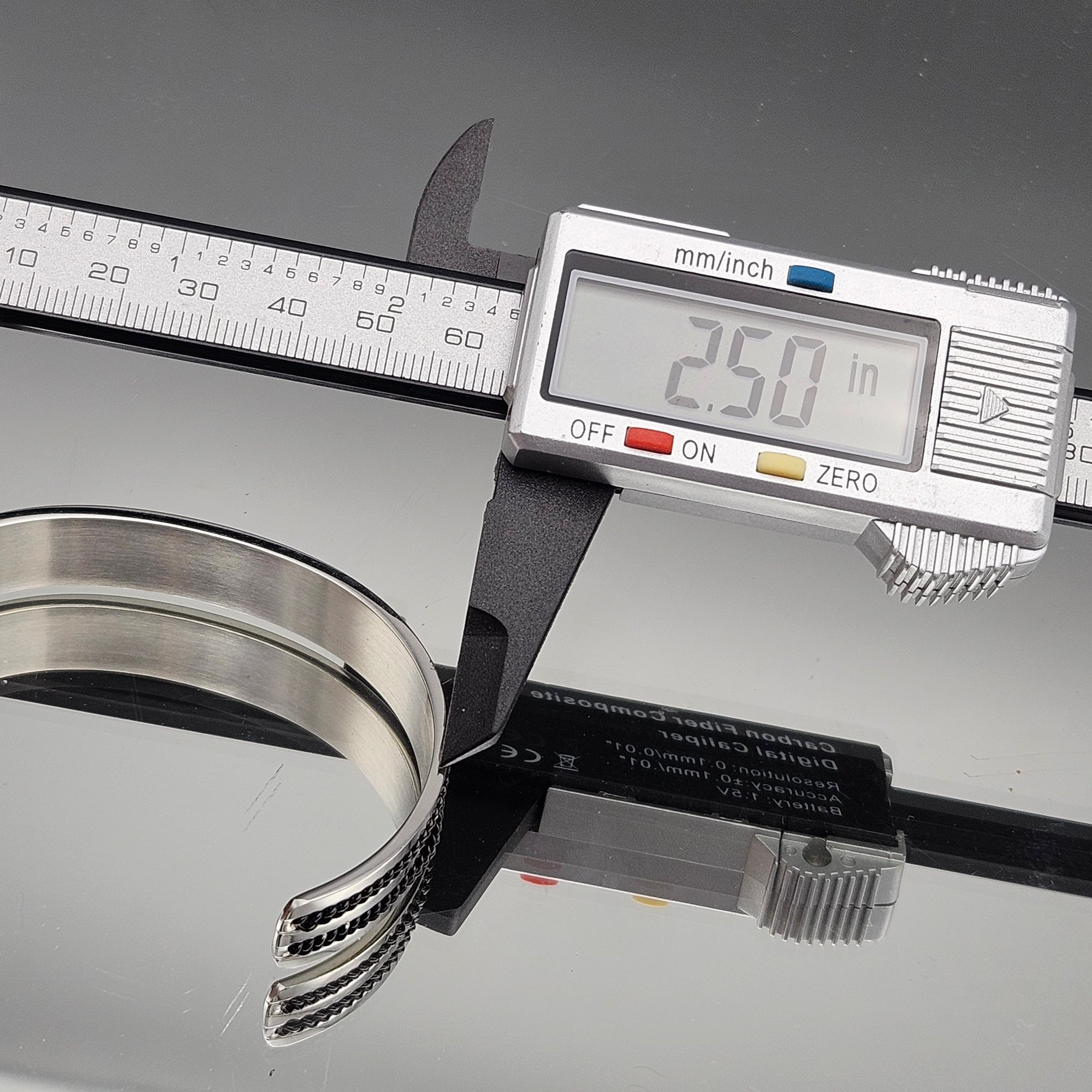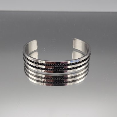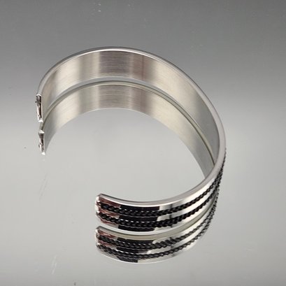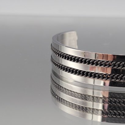 Titanium Steel Two-Tone Cuff: Black Chain Inlay & Polished Silver Tone Bangle - 2.5"