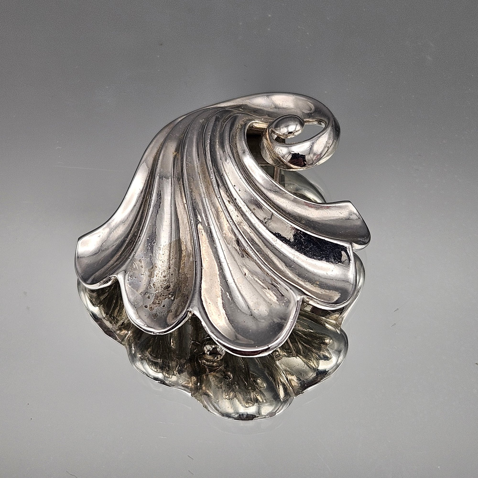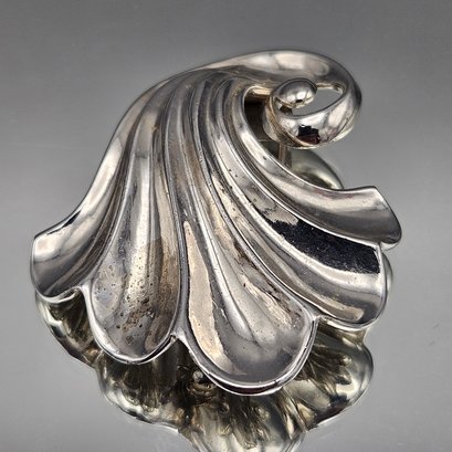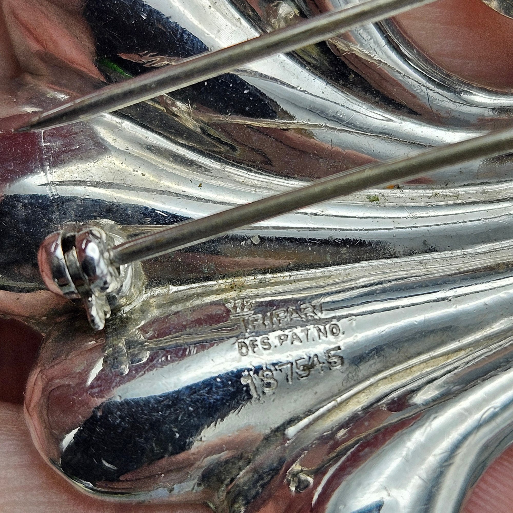 Trifari Crown Alfred Philippe Silver Tone Swirl Shell Brooch