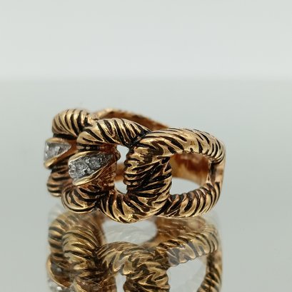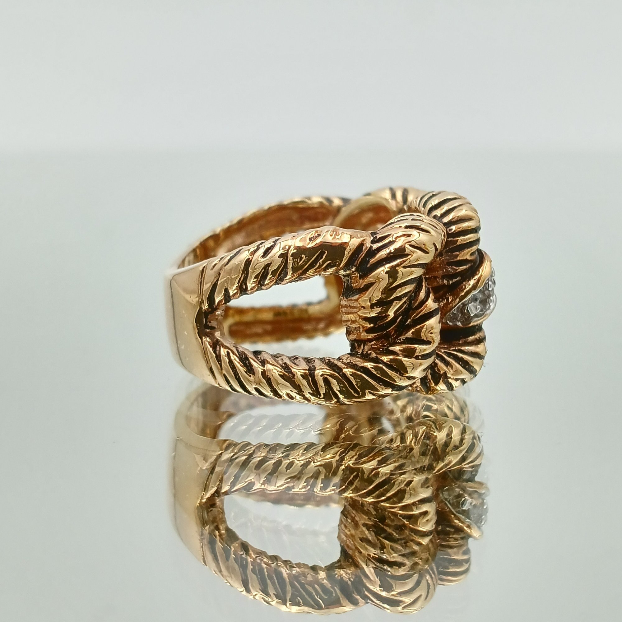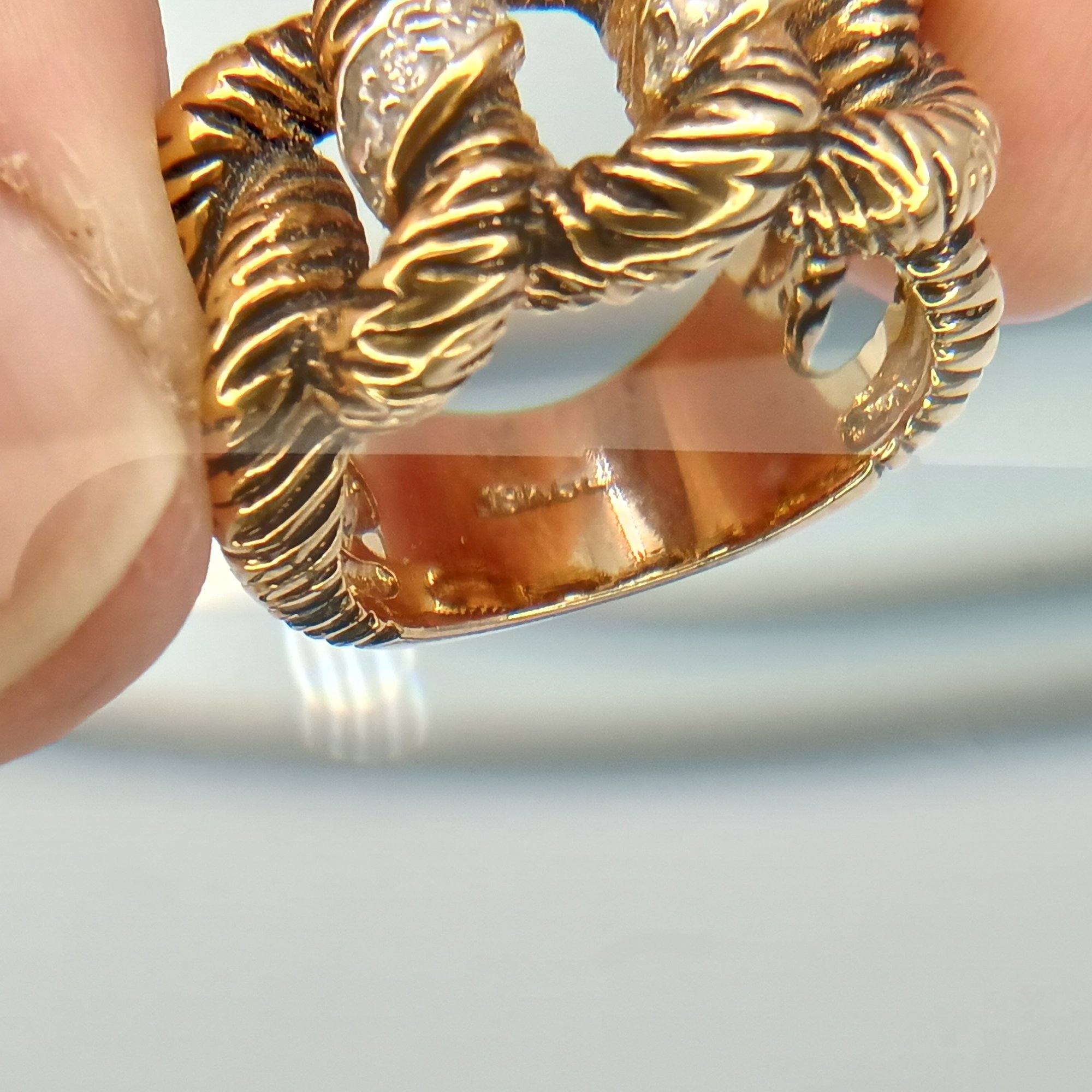 Crafted with a thick layer of 18K gold mechanically bonded to a durable base metal, this classic "rope" design features a double-knot motif accented by two sparkling pavé-set clusters.