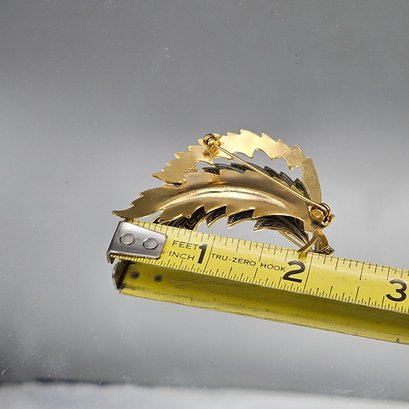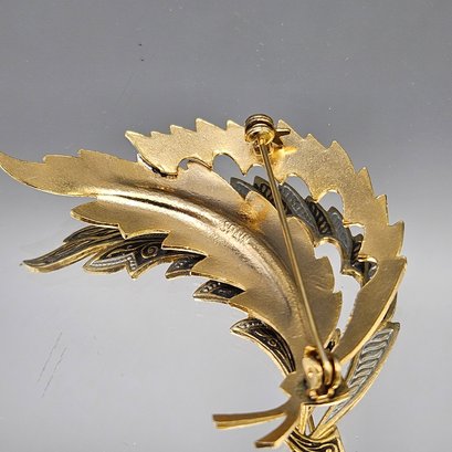 vintage 2-Inch Spanish Damascene Leaf Pin