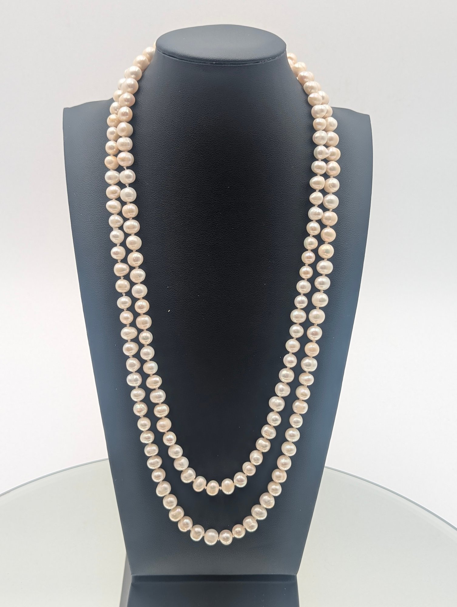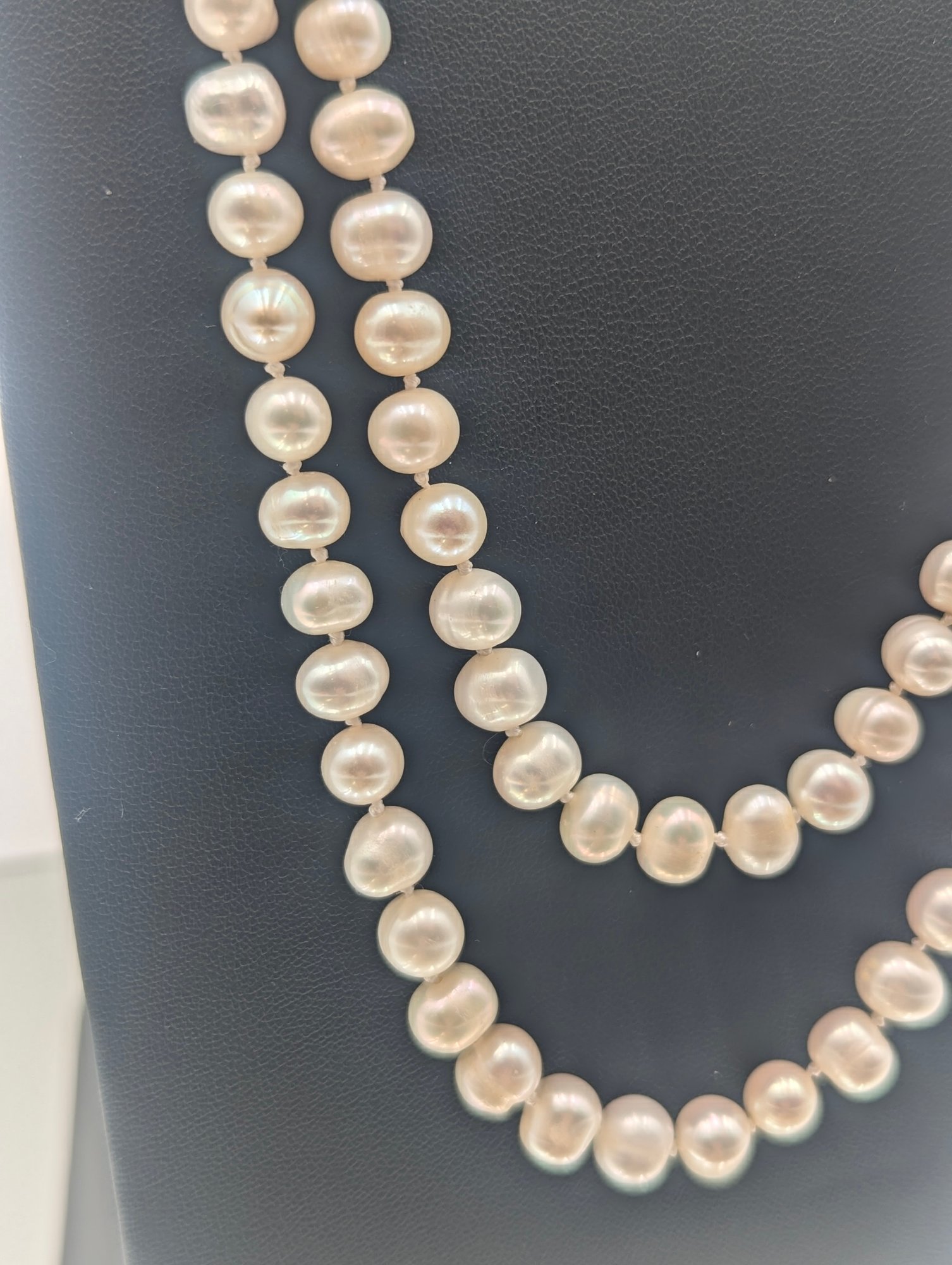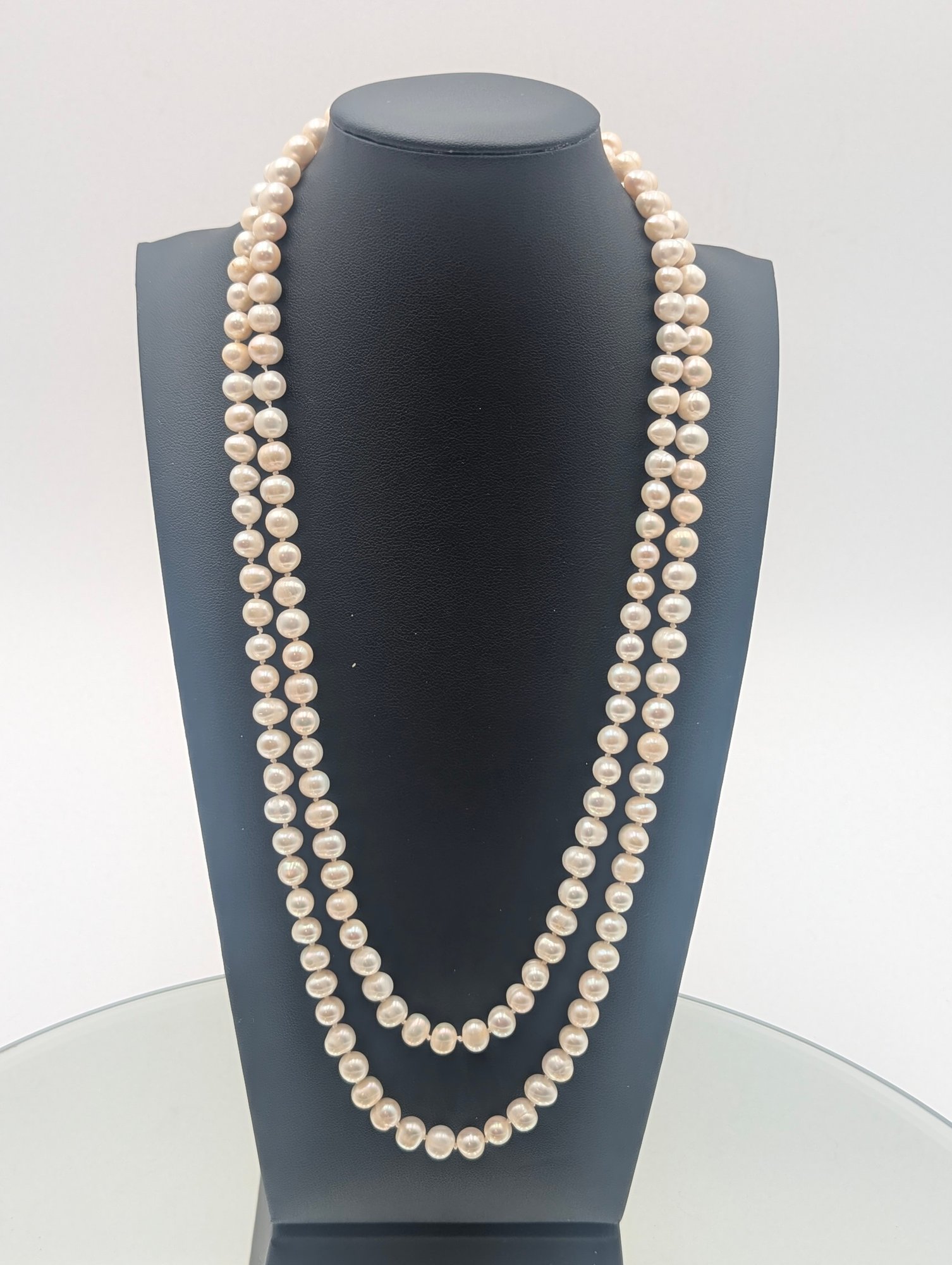 Vintage 44" Hand-Knotted Freshwater Pearl Rope Necklace - Creamy High Luster