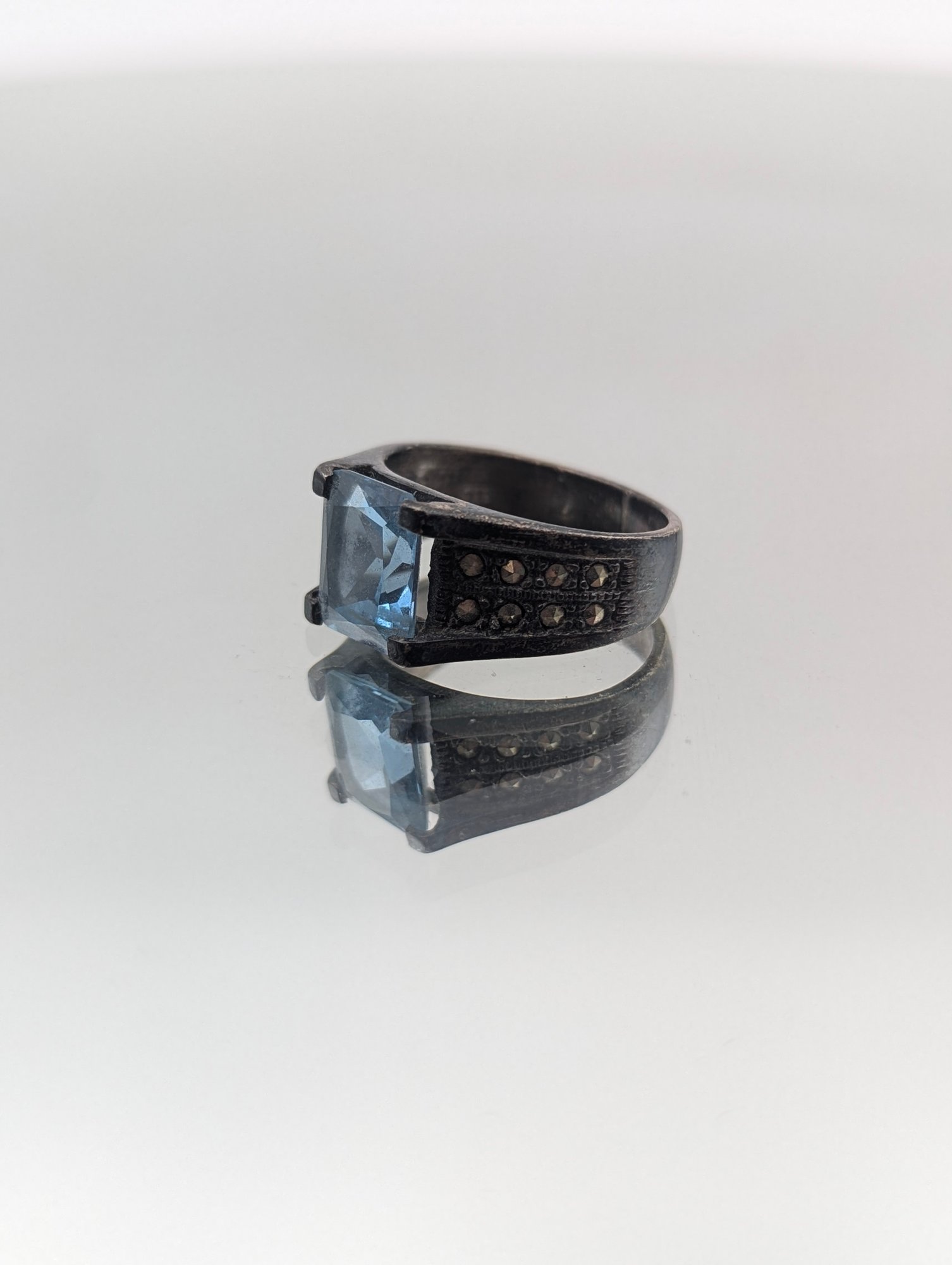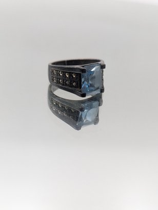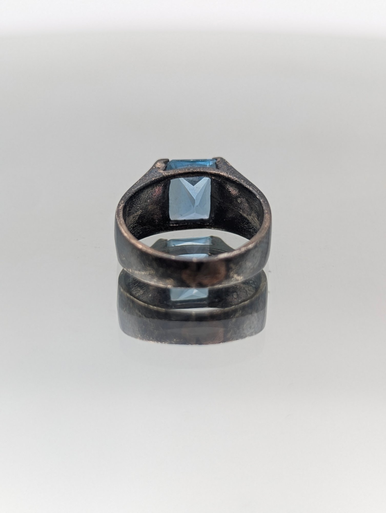 Vintage 925 Sterling Silver Emerald-Cut Blue Stone Ring - Size 6.5