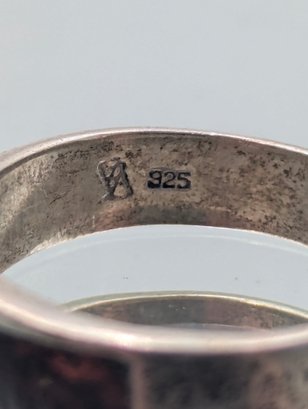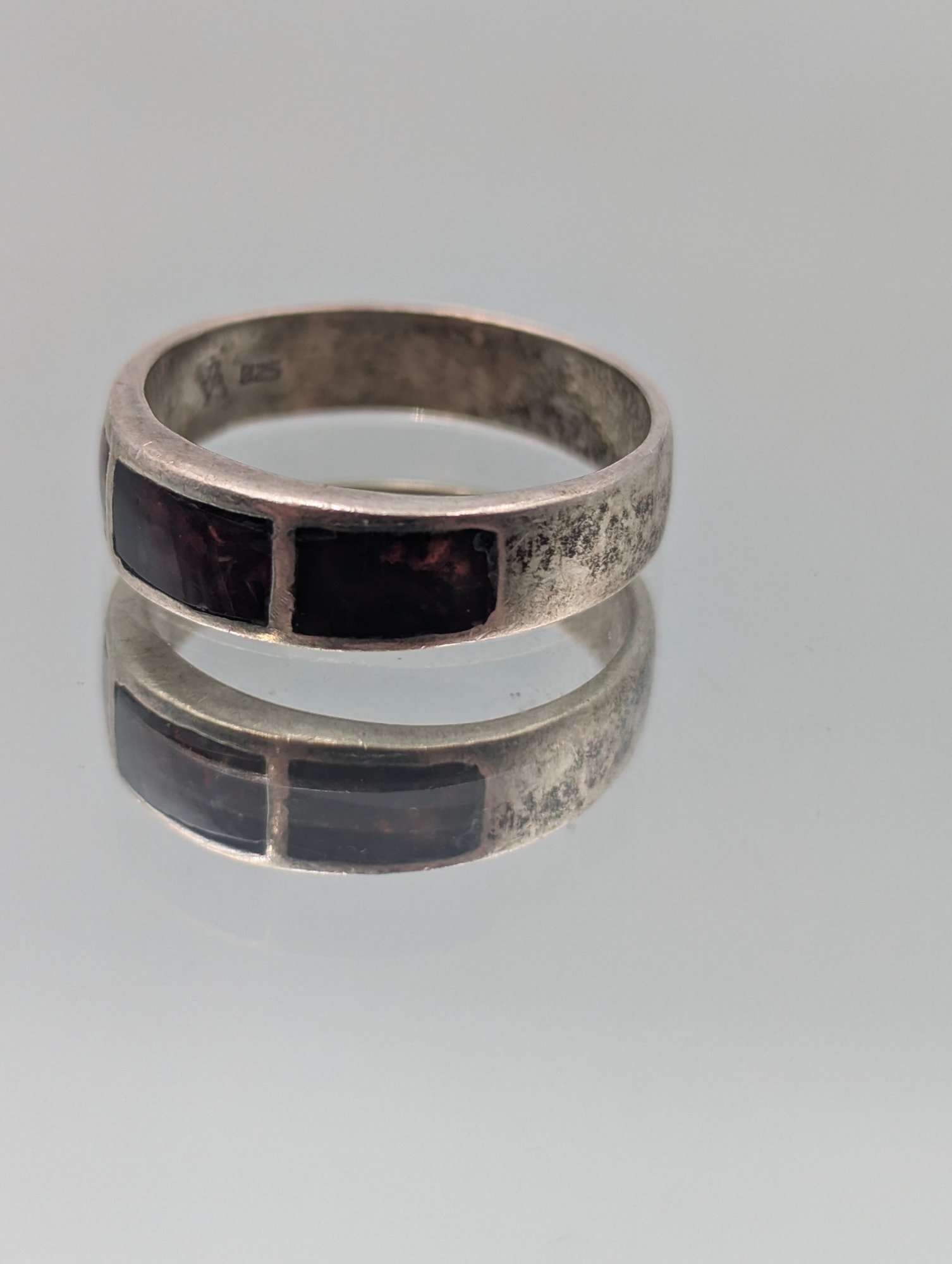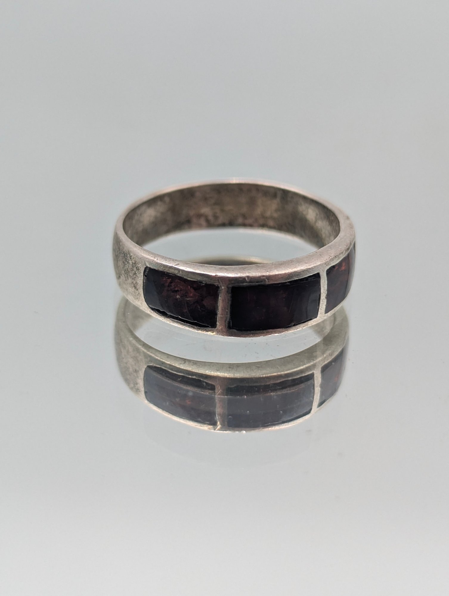 Vintage 925 Sterling Silver Garnet Inlay Band Ring - Size 7.5