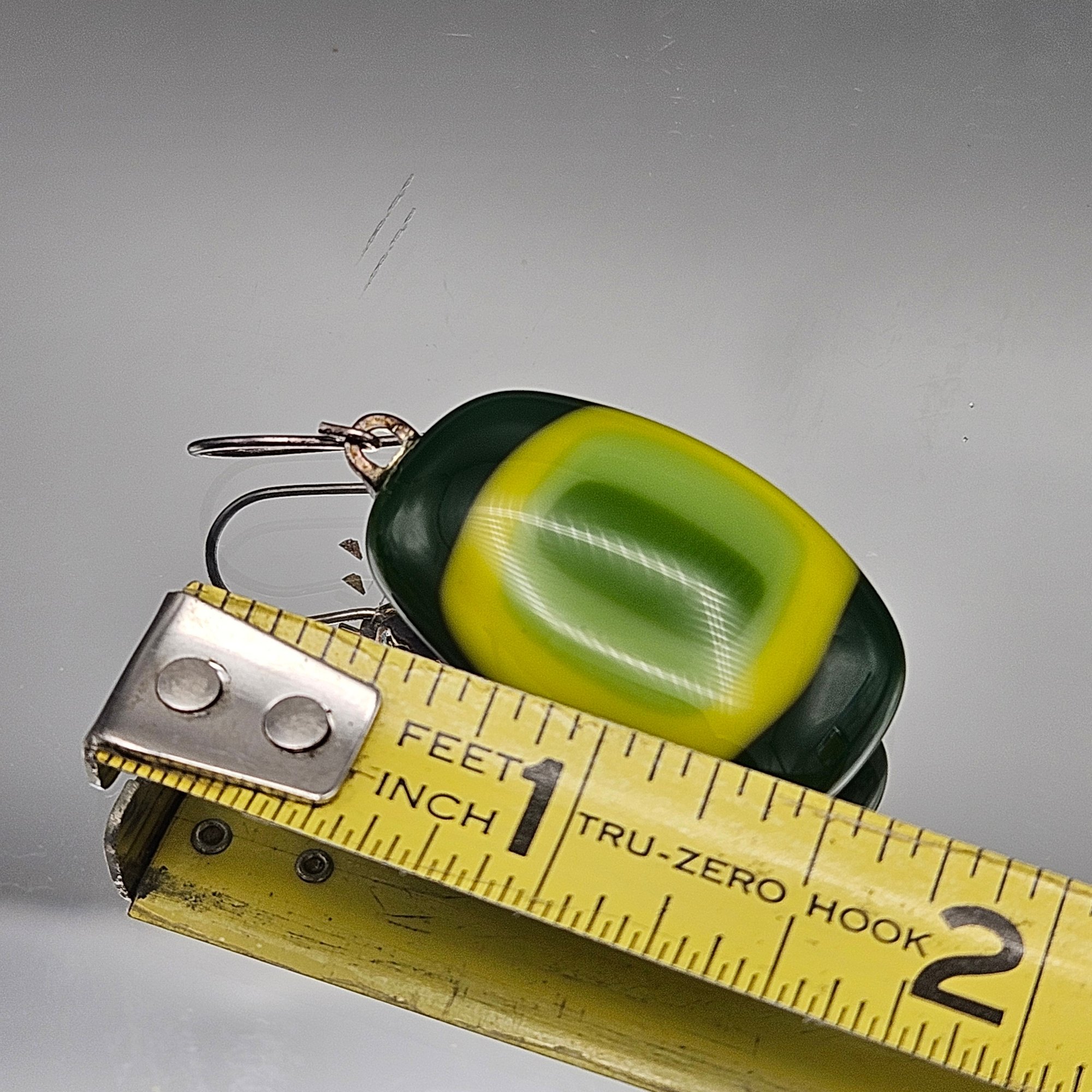 Vintage Art Glass Green Yellow Drop Earrings