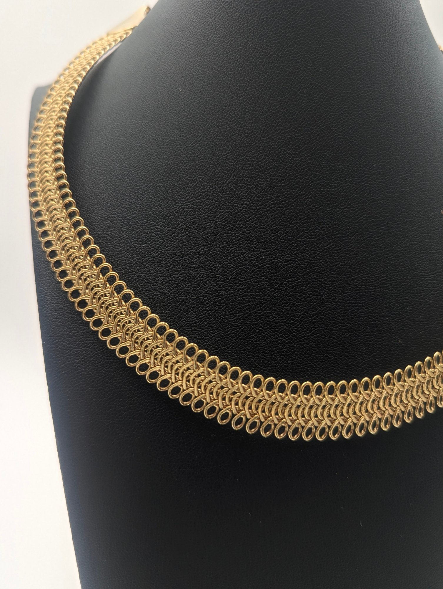 Vintage Avon Gold Tone Woven Mesh Statement Necklace - Hallmarked