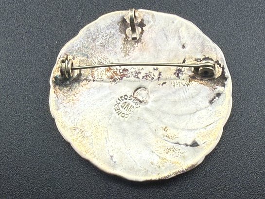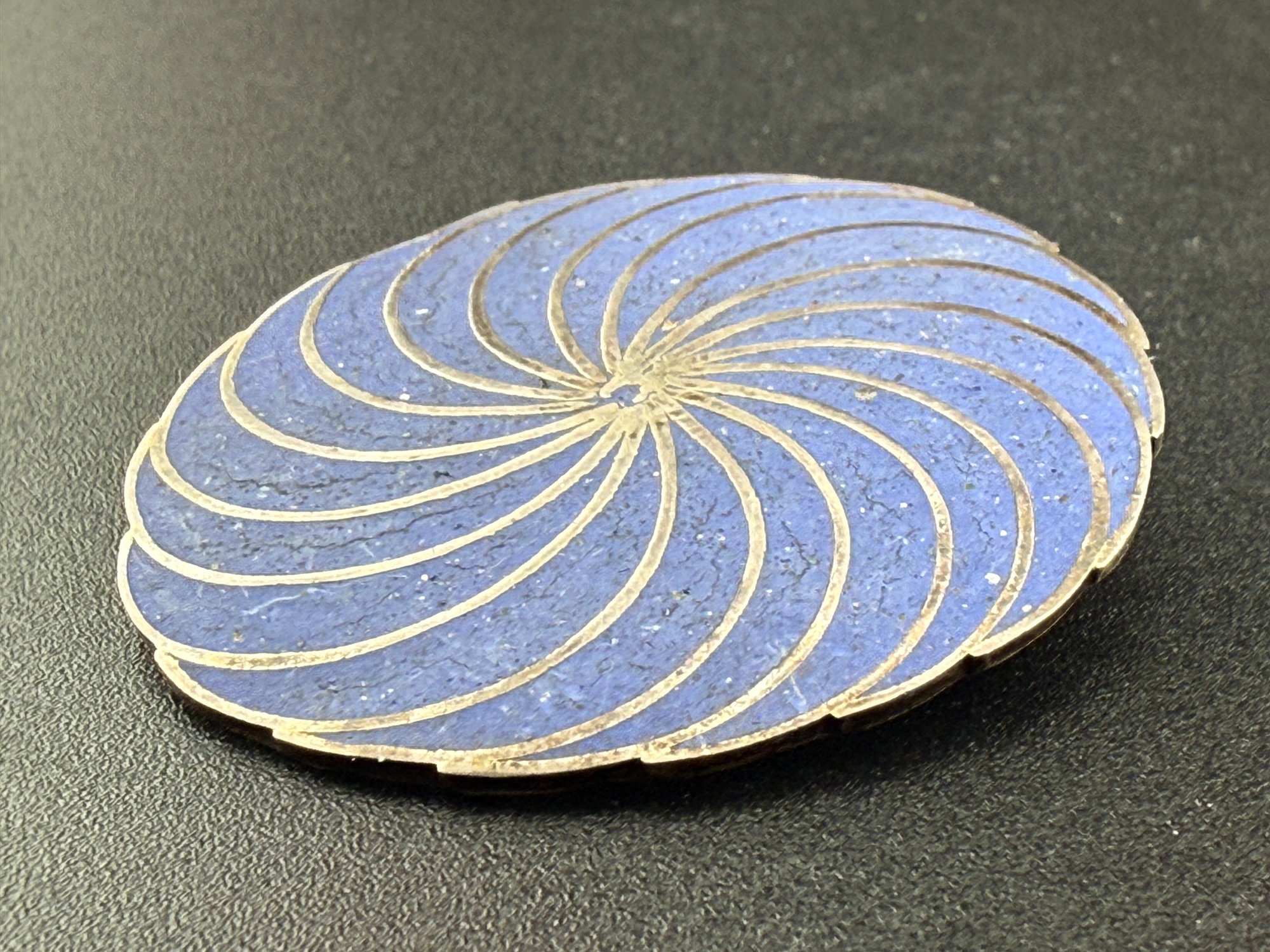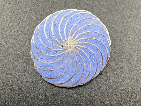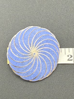 Vintage Blue Enamel Spiral Swirl Brooch Pin Sterling Silver Modernist Mid-Century