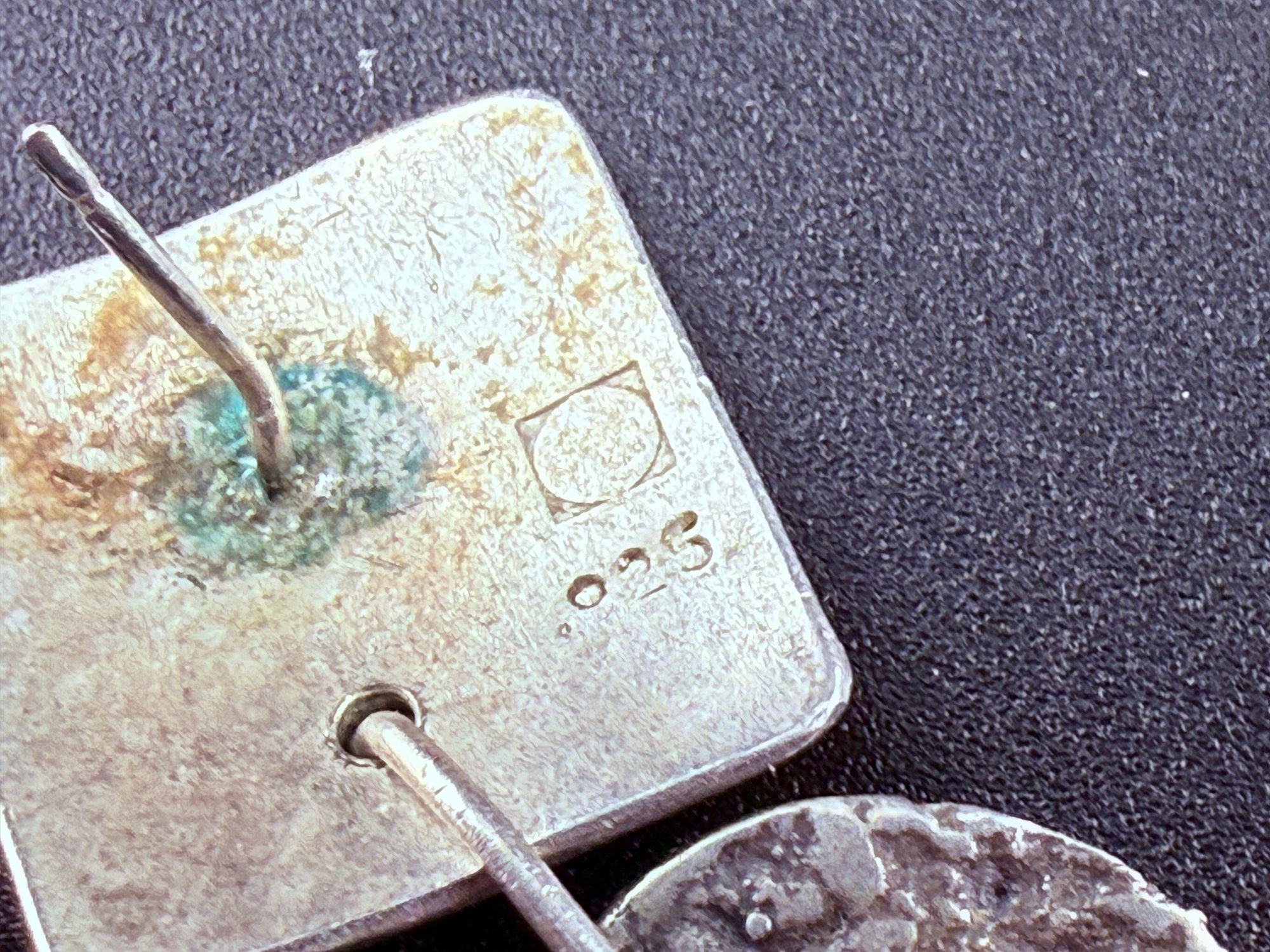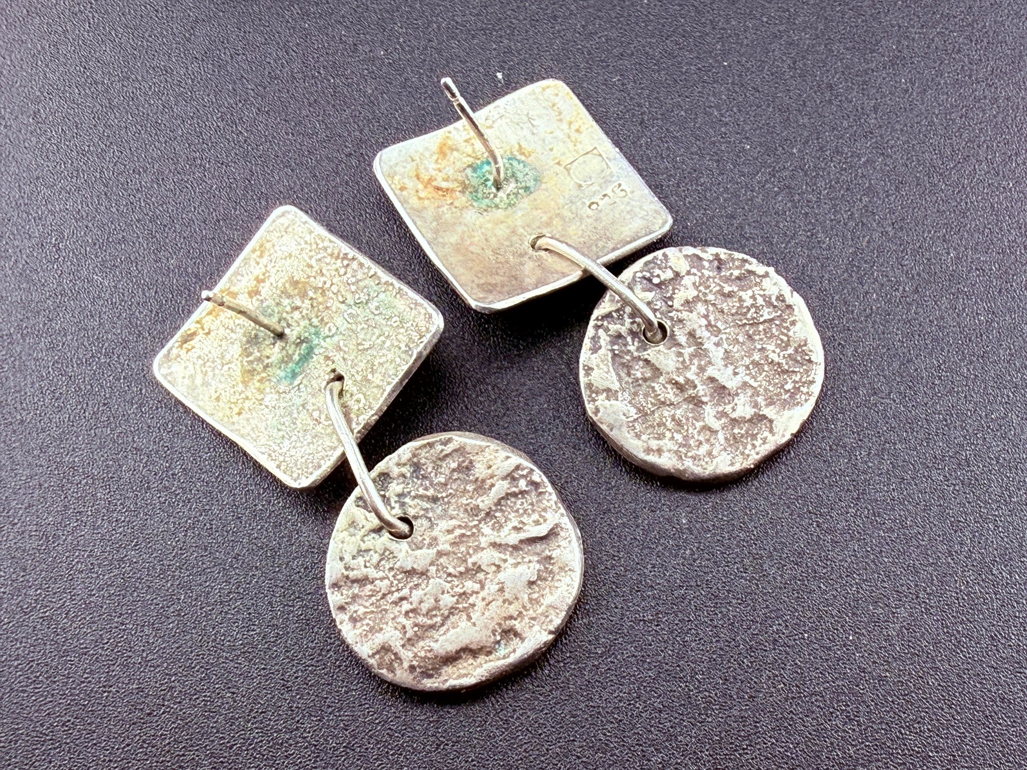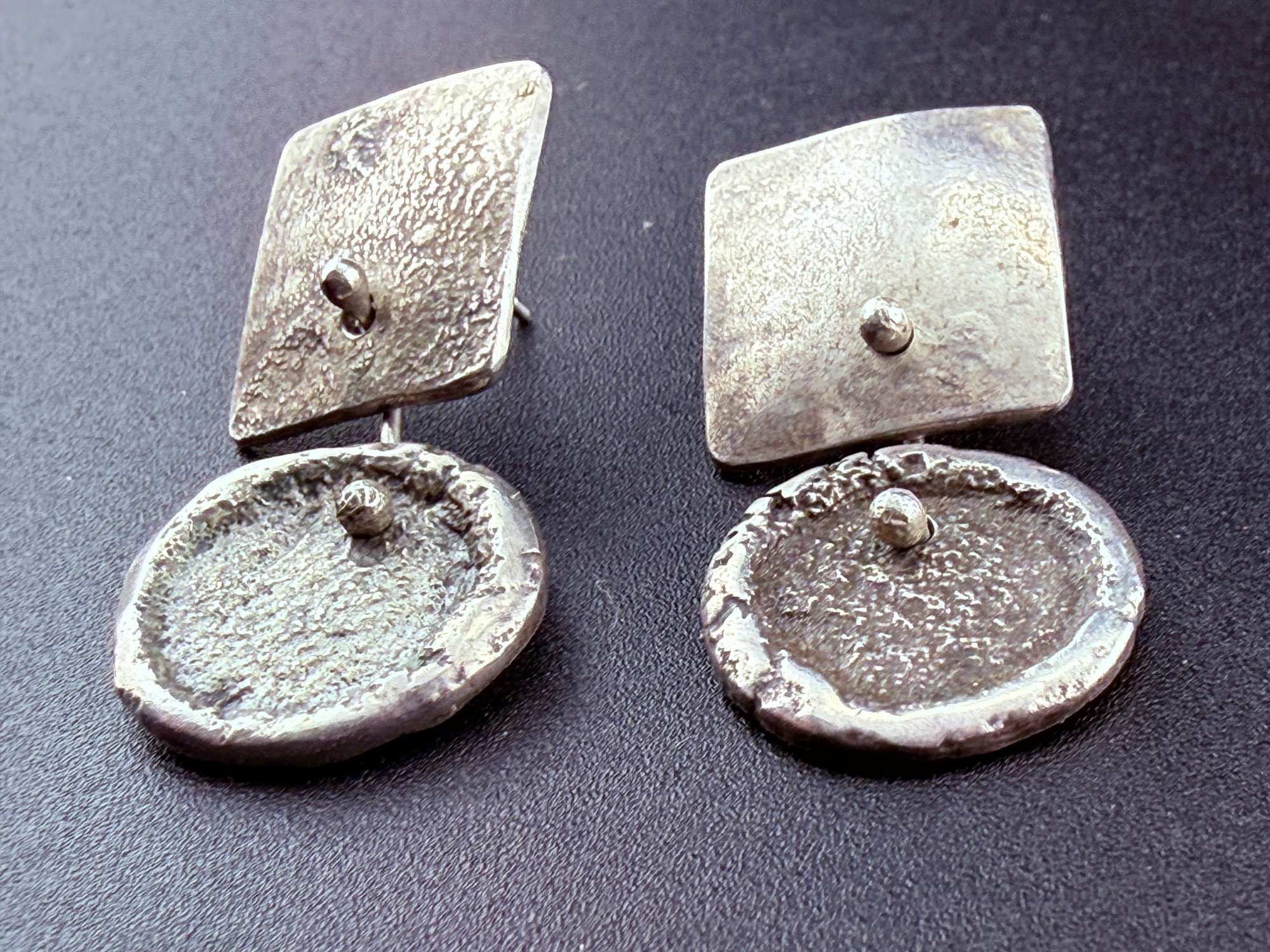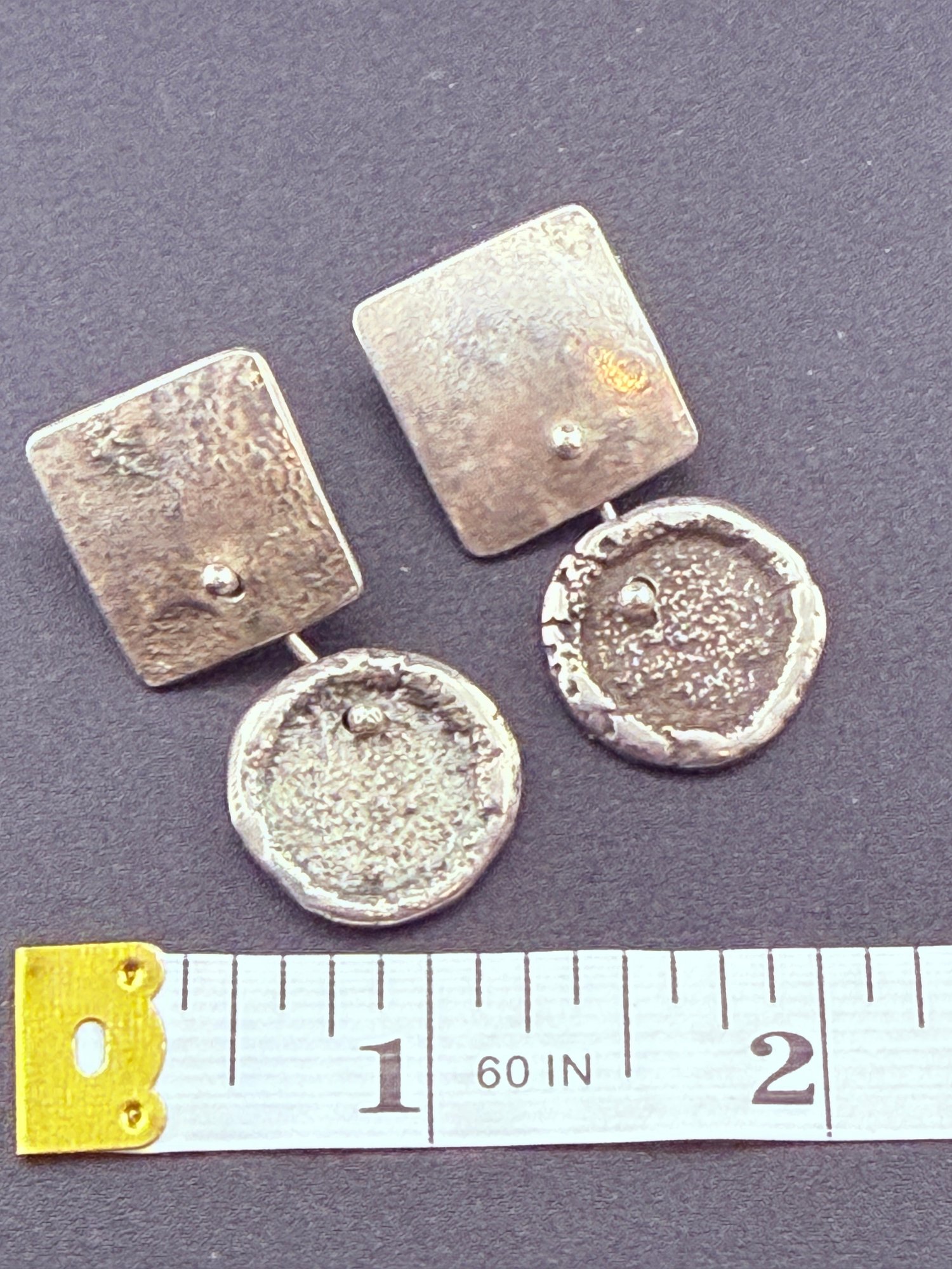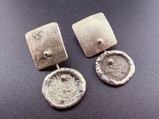Vintage Brutalist Sterling Silver Geometric Drop Earrings - Signed 925