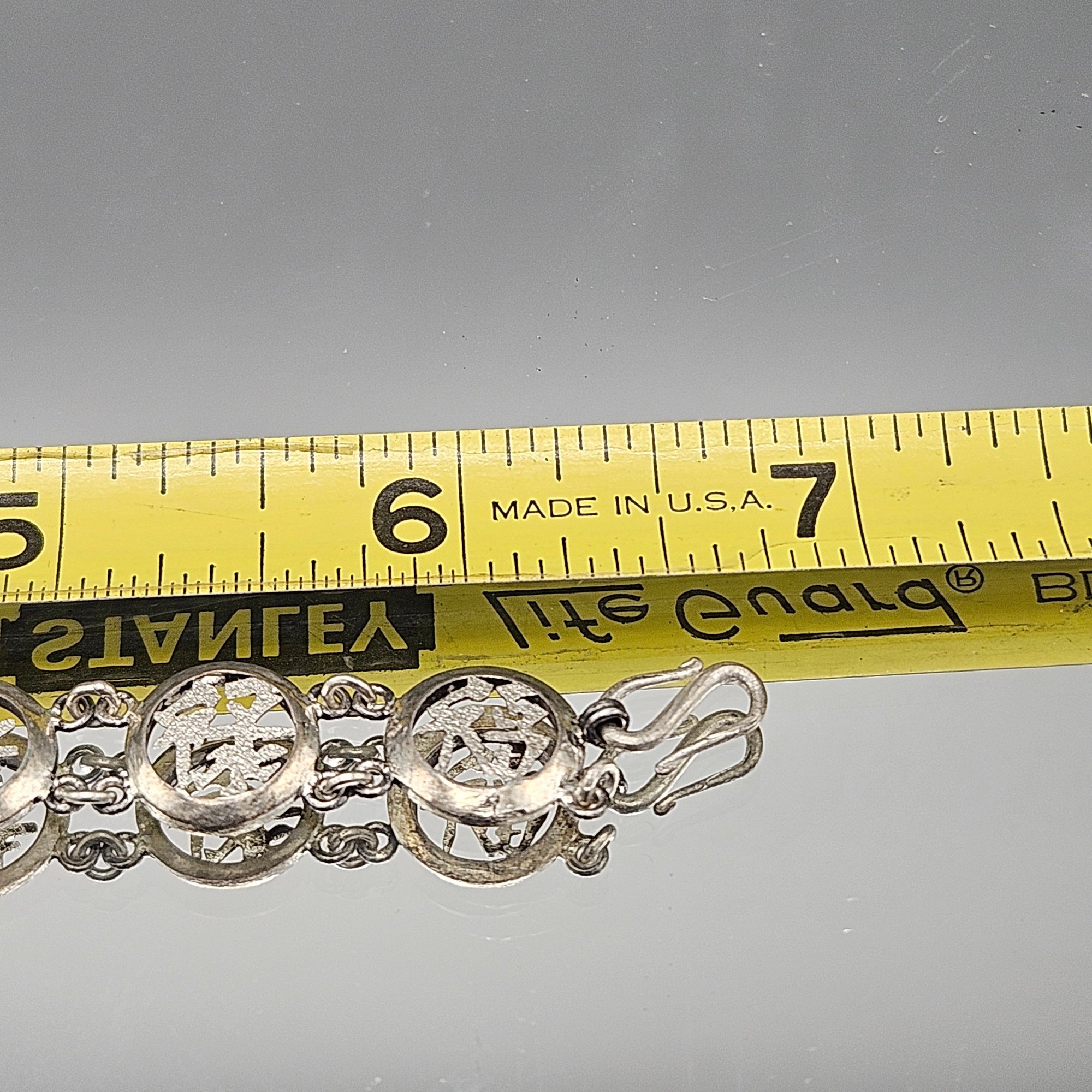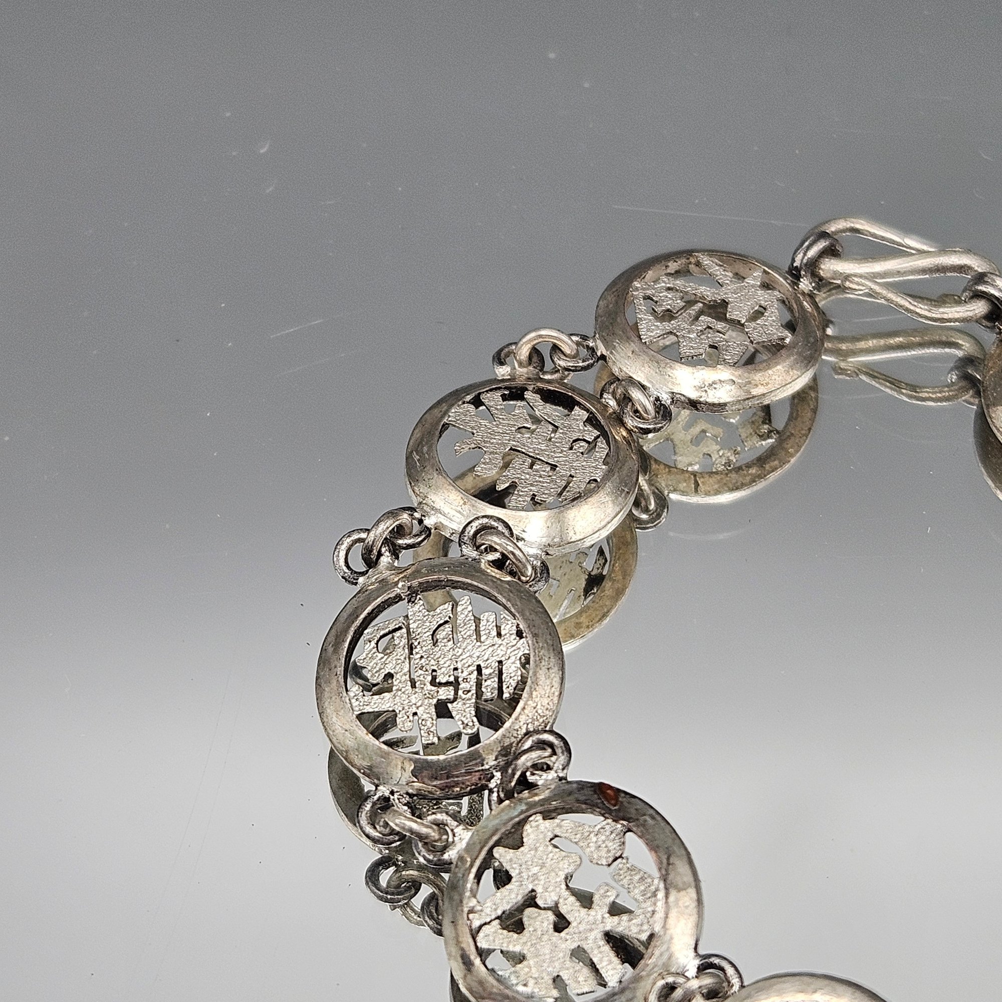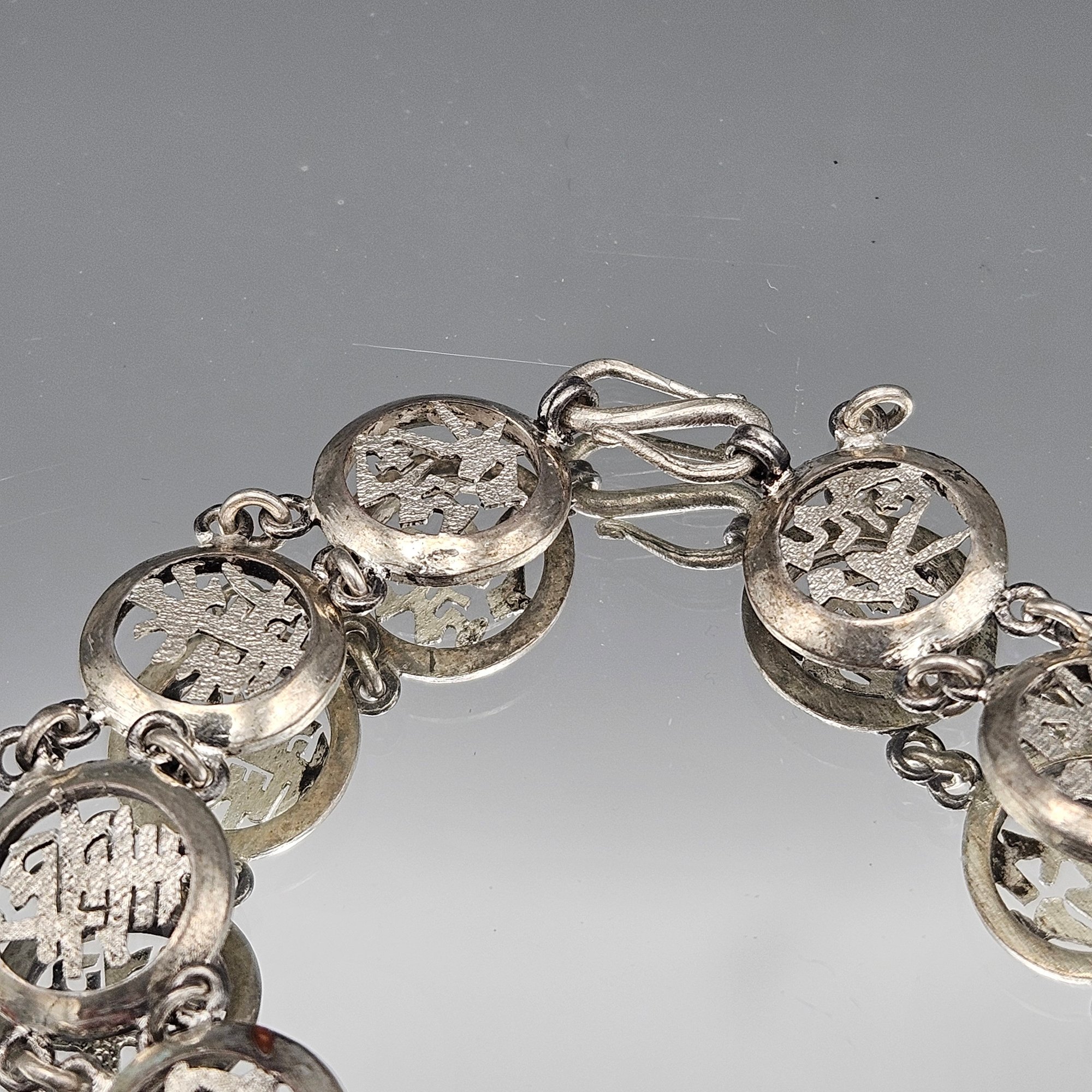 Vintage Chinese Export Silver-tone Filigree Character Link Bracelet