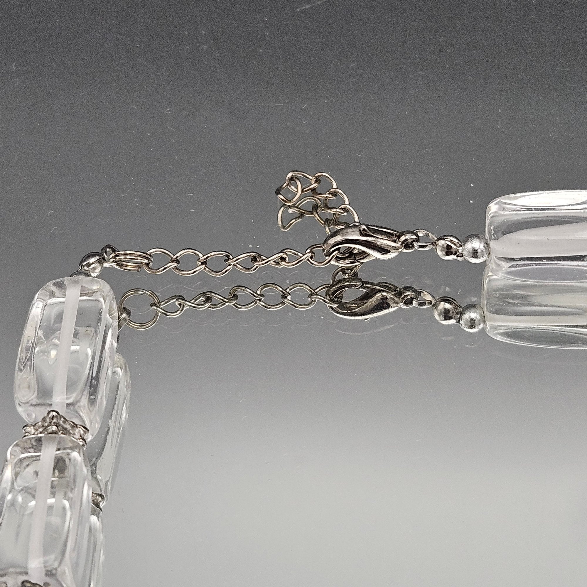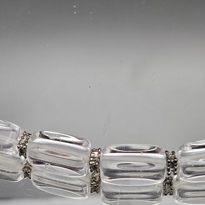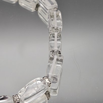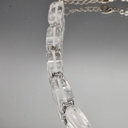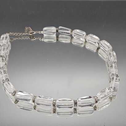 Vintage Clear Lucite Ice Bead Necklace Strand Silver Tone Hardware 18"