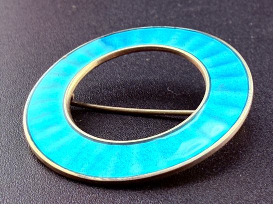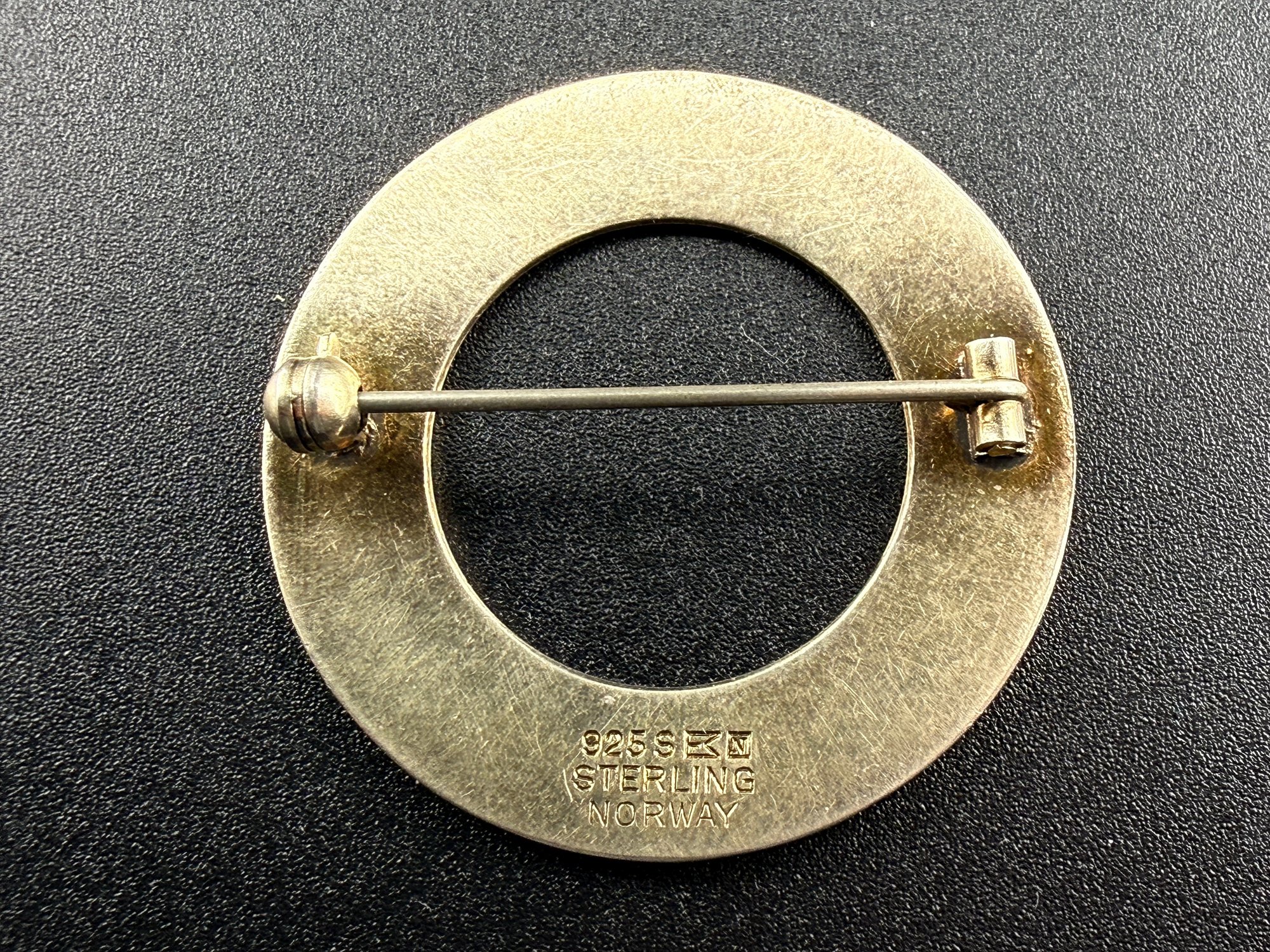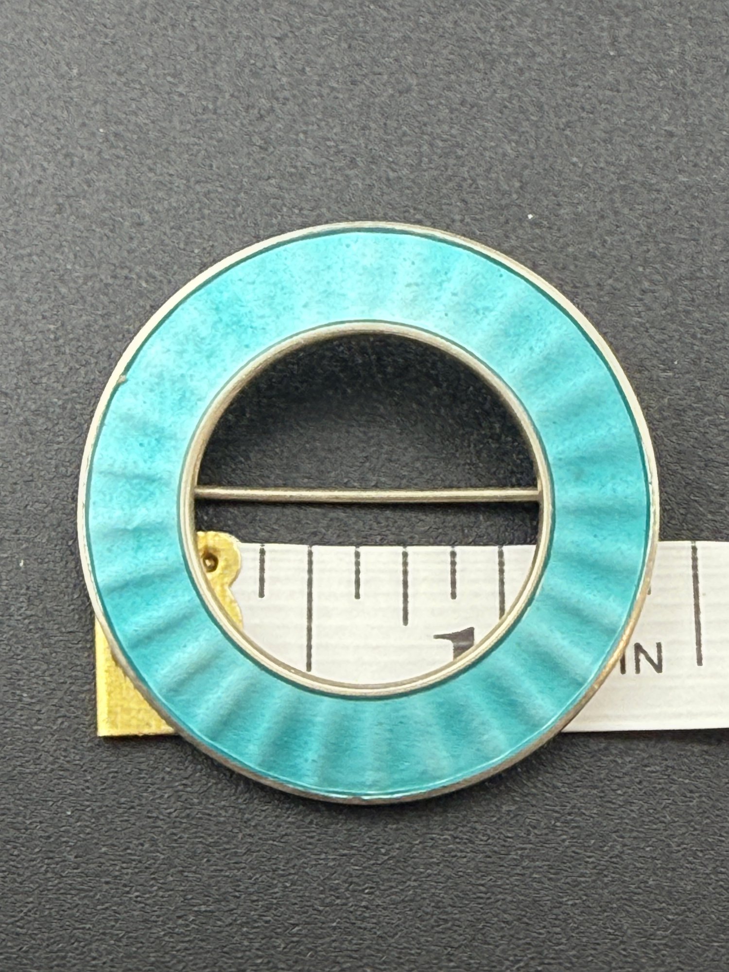 Vintage David-Andersen Norway Style Sterling Silver 925S Guilloché Enamel Circle Brooch