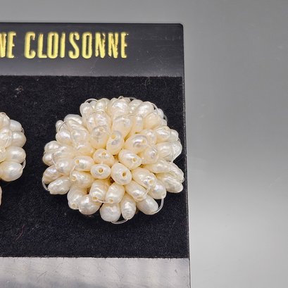 Vintage Faux Pearl Cluster Clip-On Earrings