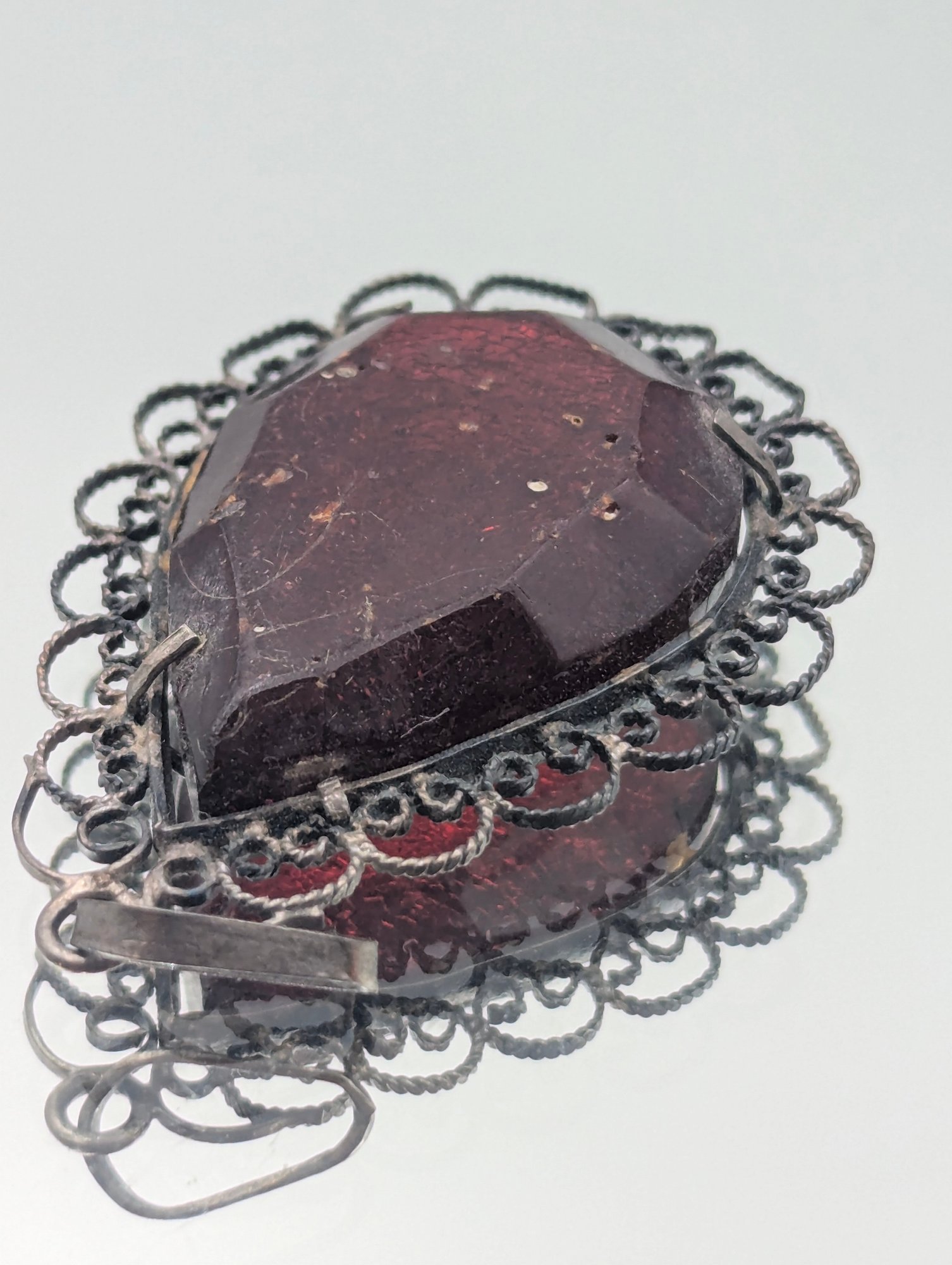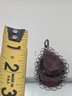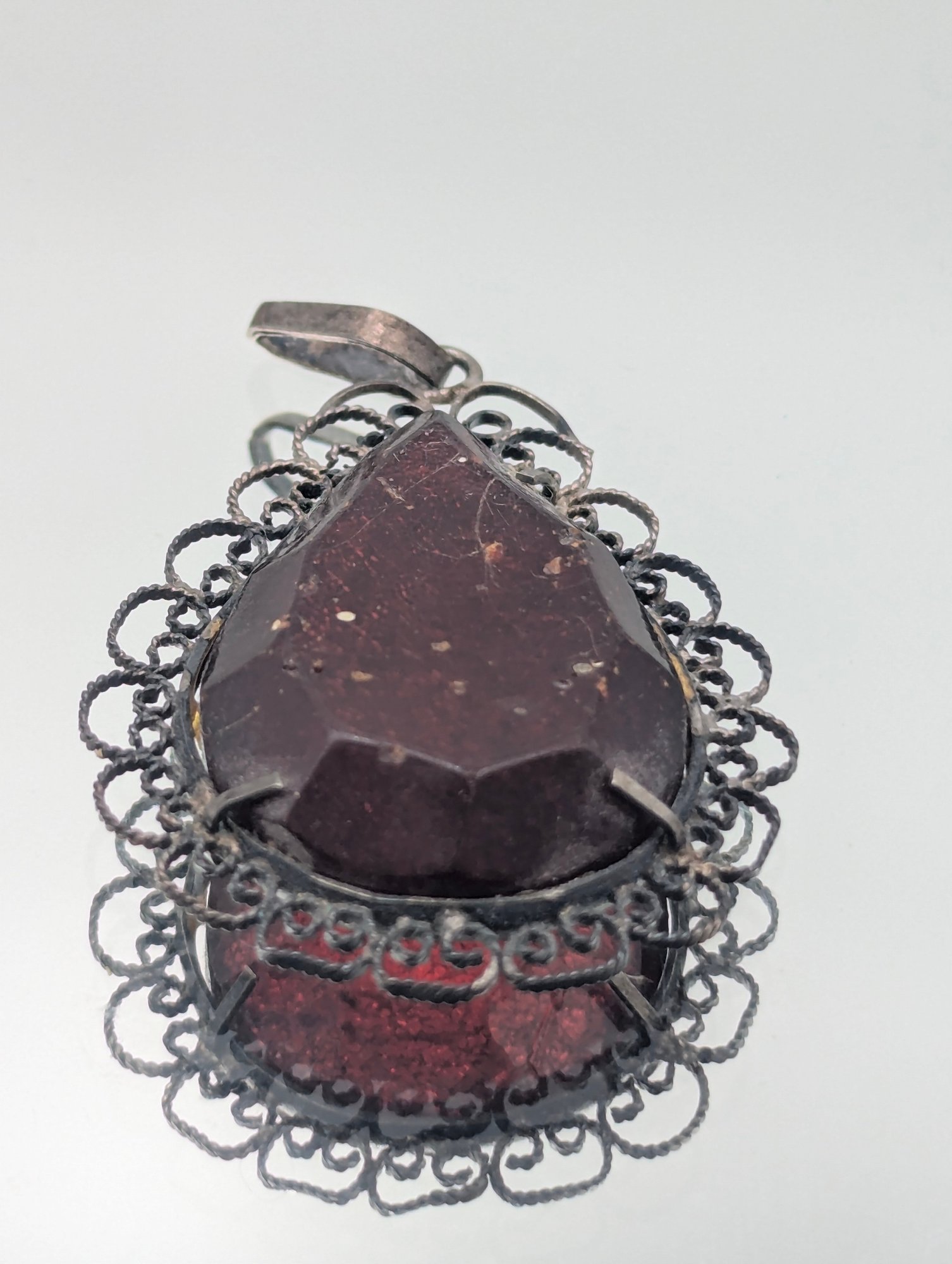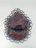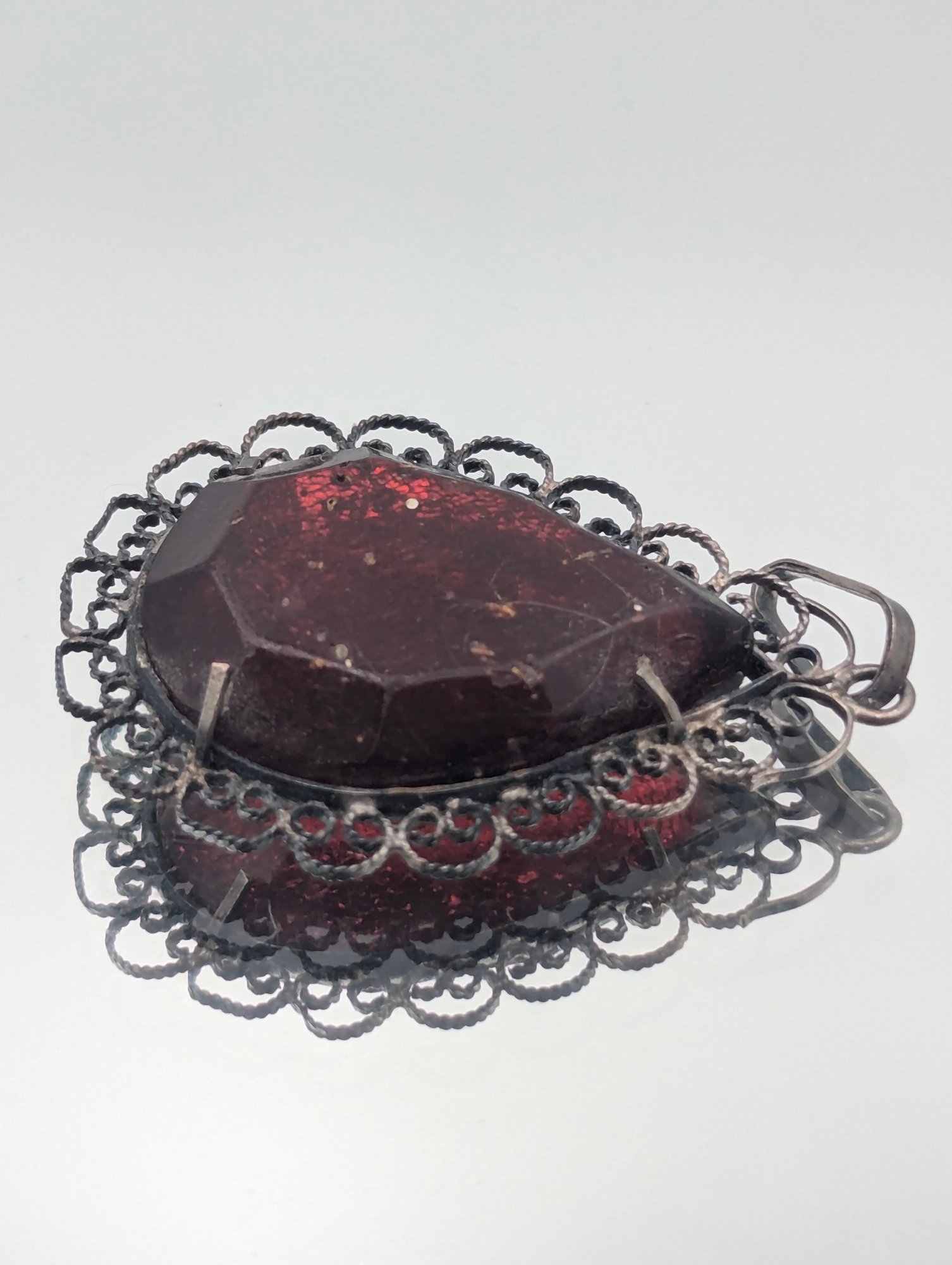 Vintage Filigree Cherry Amber Pear-Shaped Pendant Ornate Sterling Silver Frame