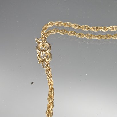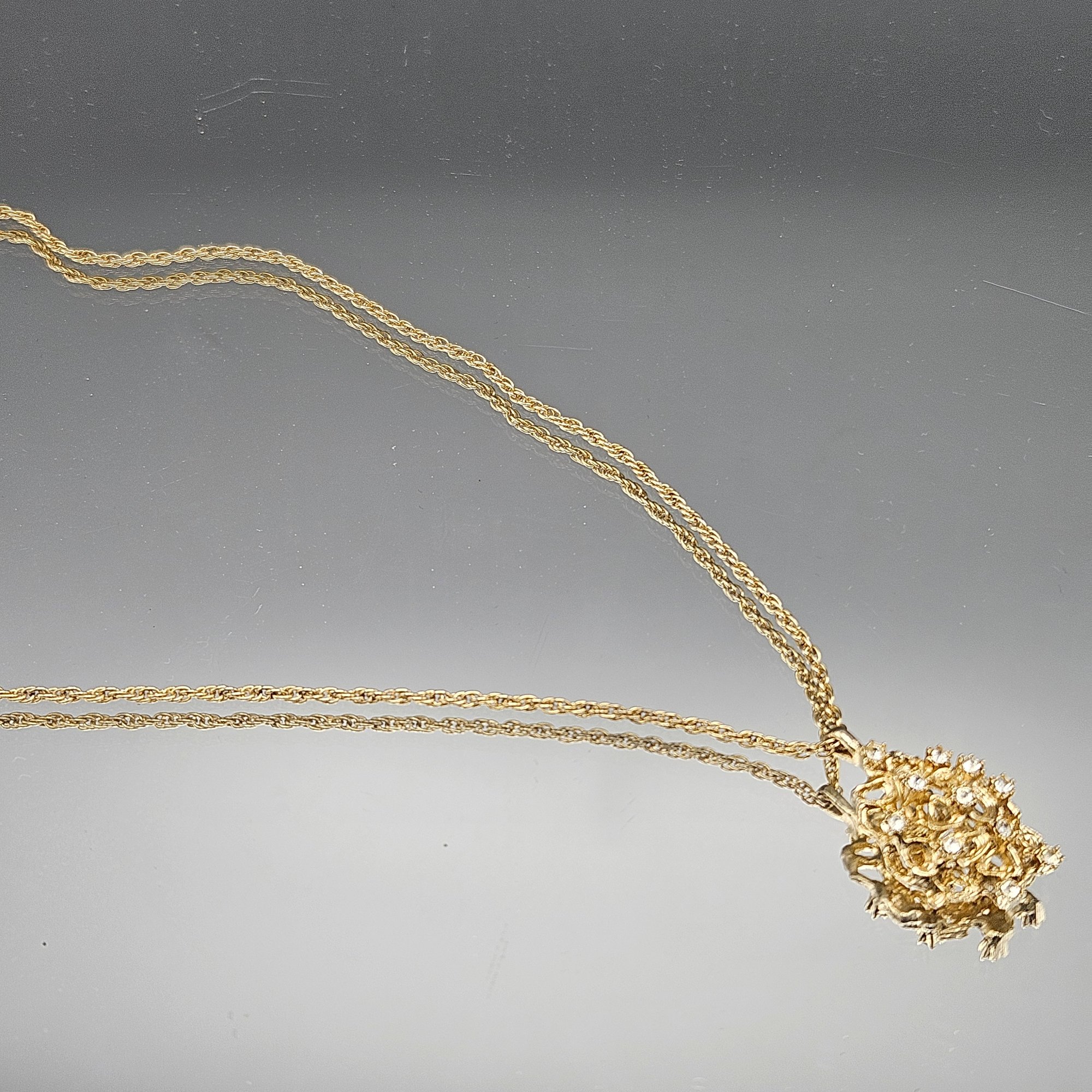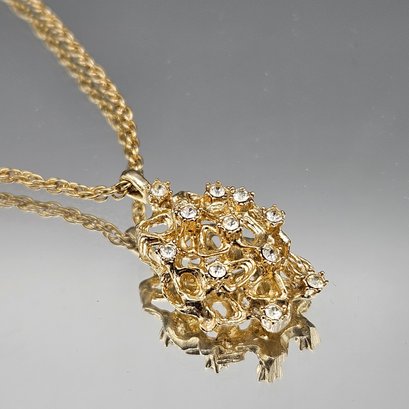 Vintage Gold-Tone Brutalist Pendant Necklace with Faux Diamond Accents