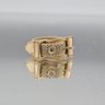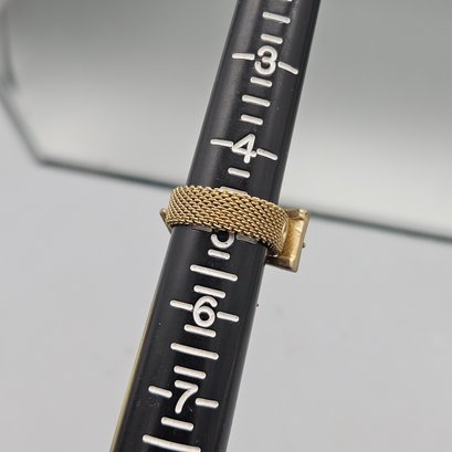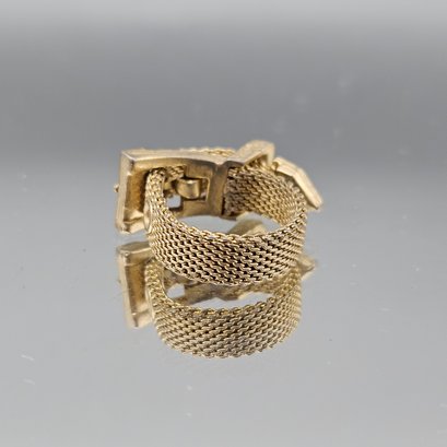 Vintage Gold-Tone Mesh Buckle Ring with Cream Enamel Accents