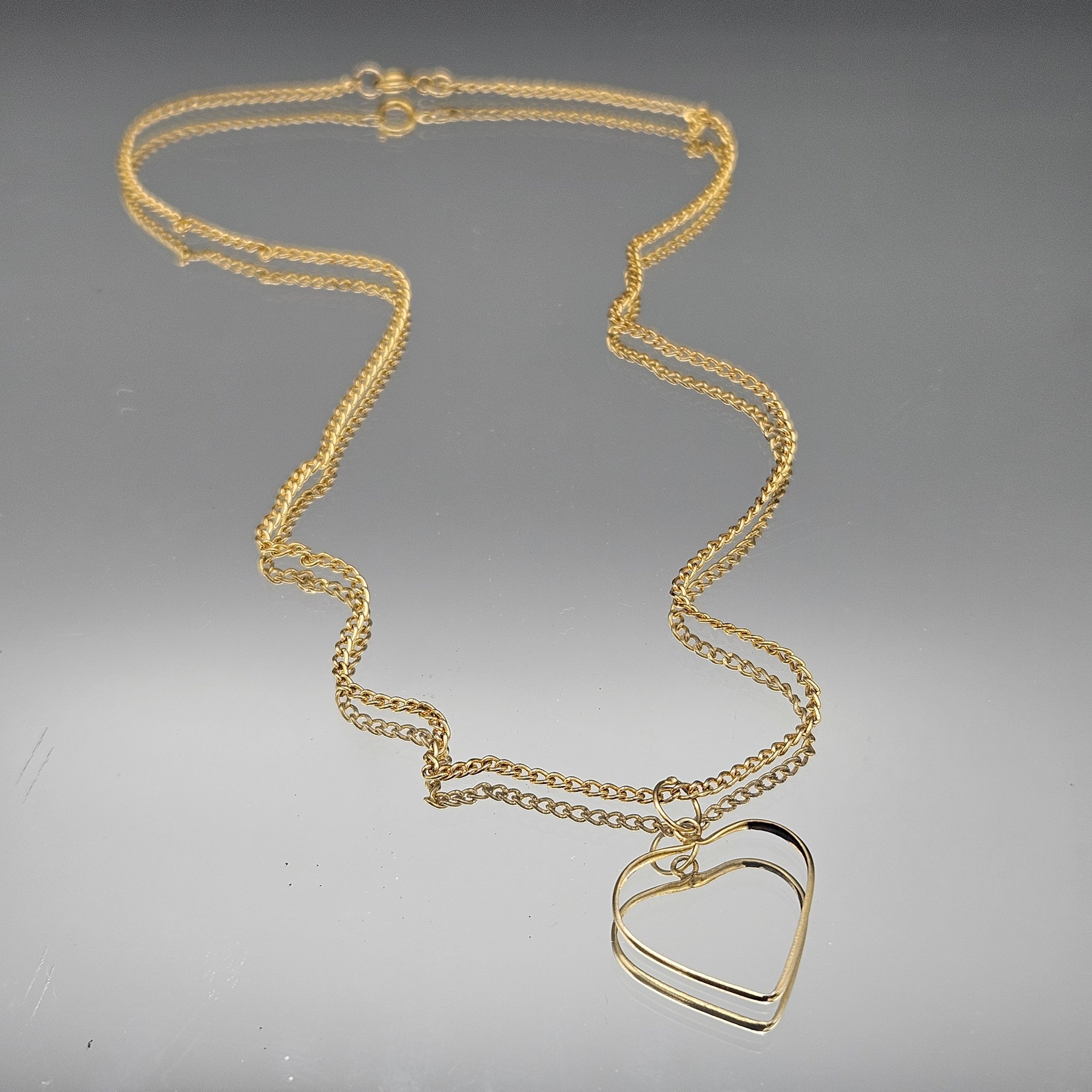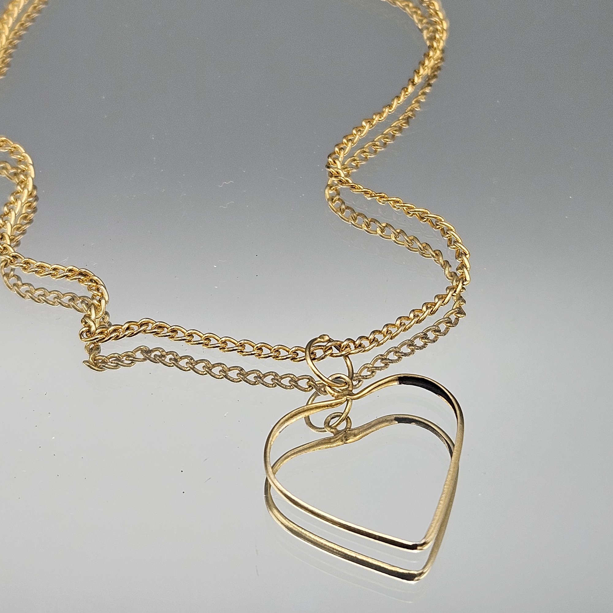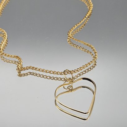 Vintage Gold-Tone Open Heart Pendant Necklace 18"