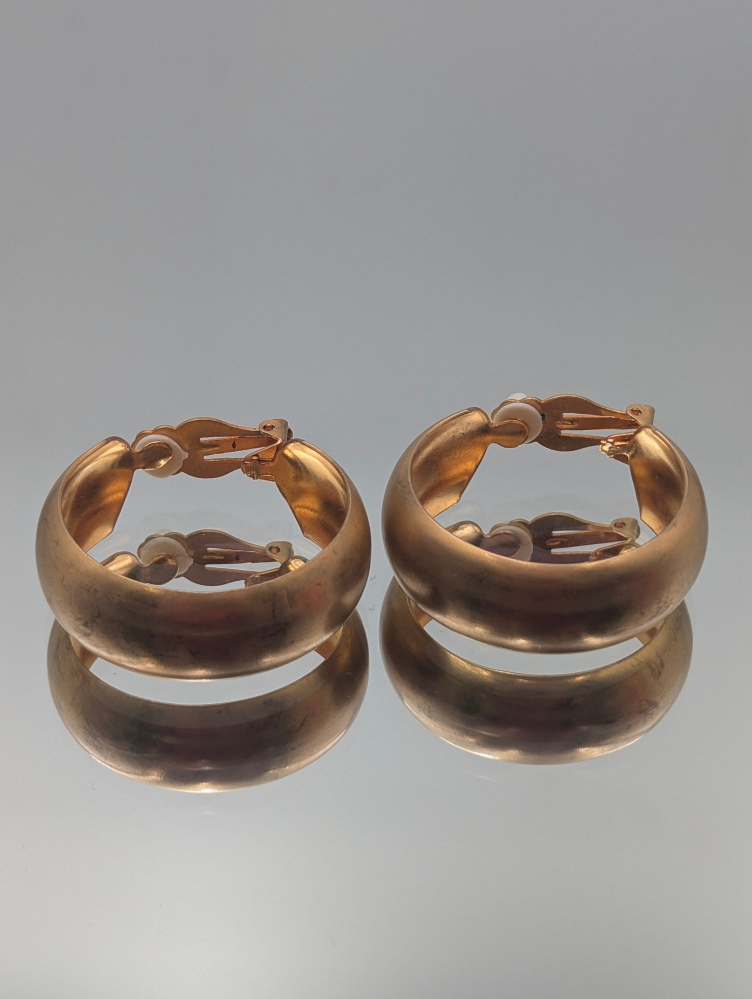 Vintage Gold Tone Thick Hoop Clip-On Earrings