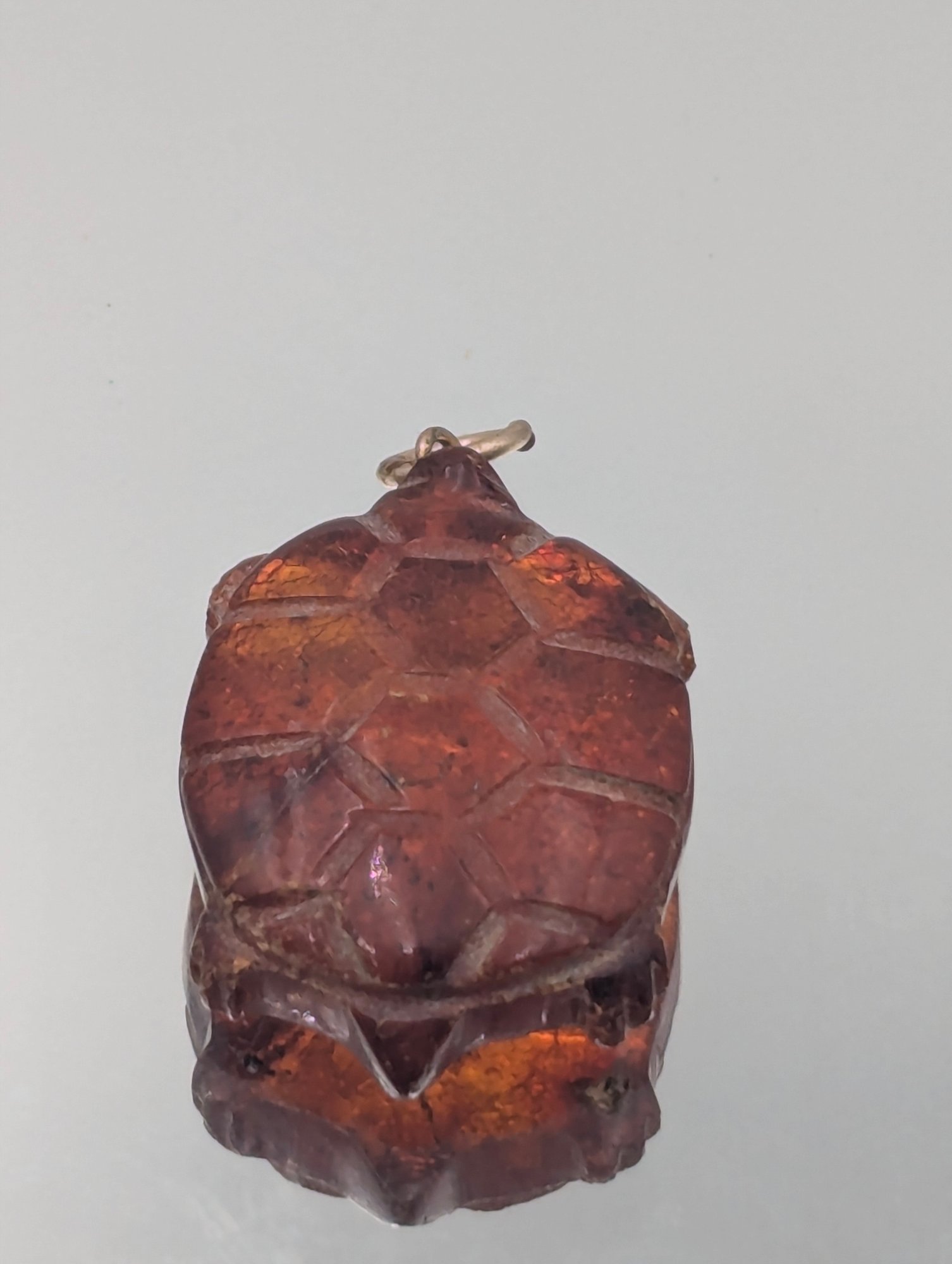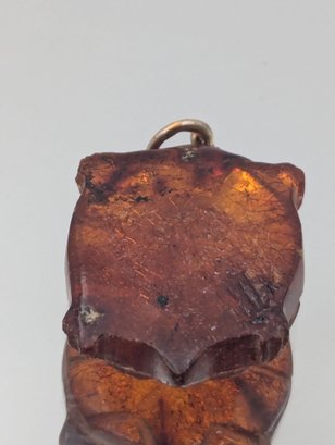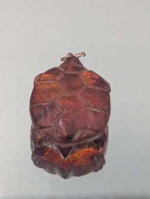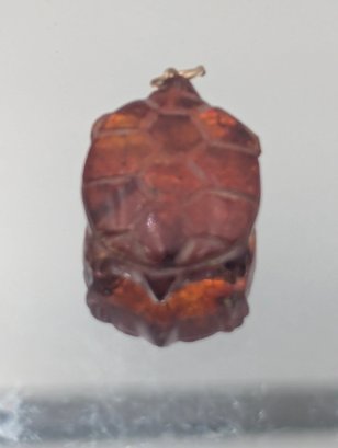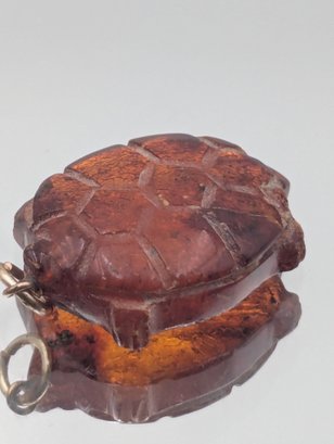 Vintage Hand-Carved Amber Turtle Pendant - 1"