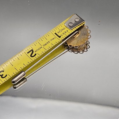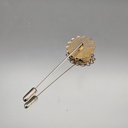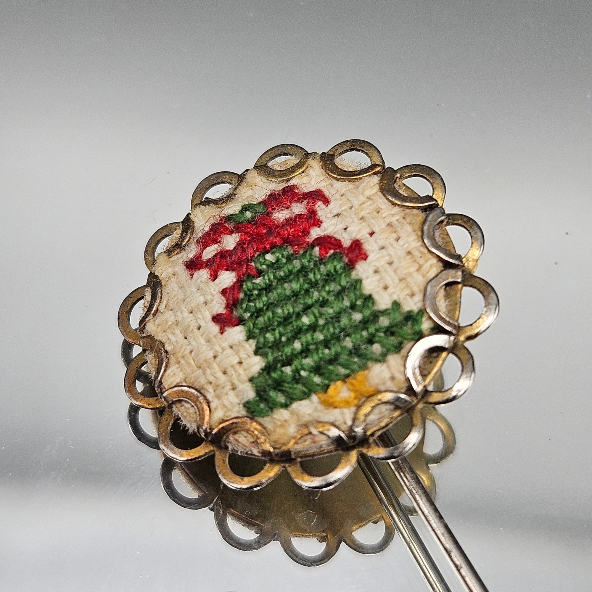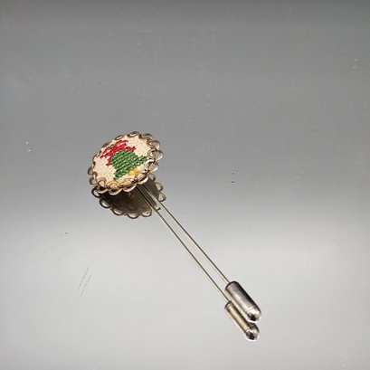 Vintage Handmade Petit Point Cross-Stitch Stick Pin with Scalloped Gold-Tone Frame