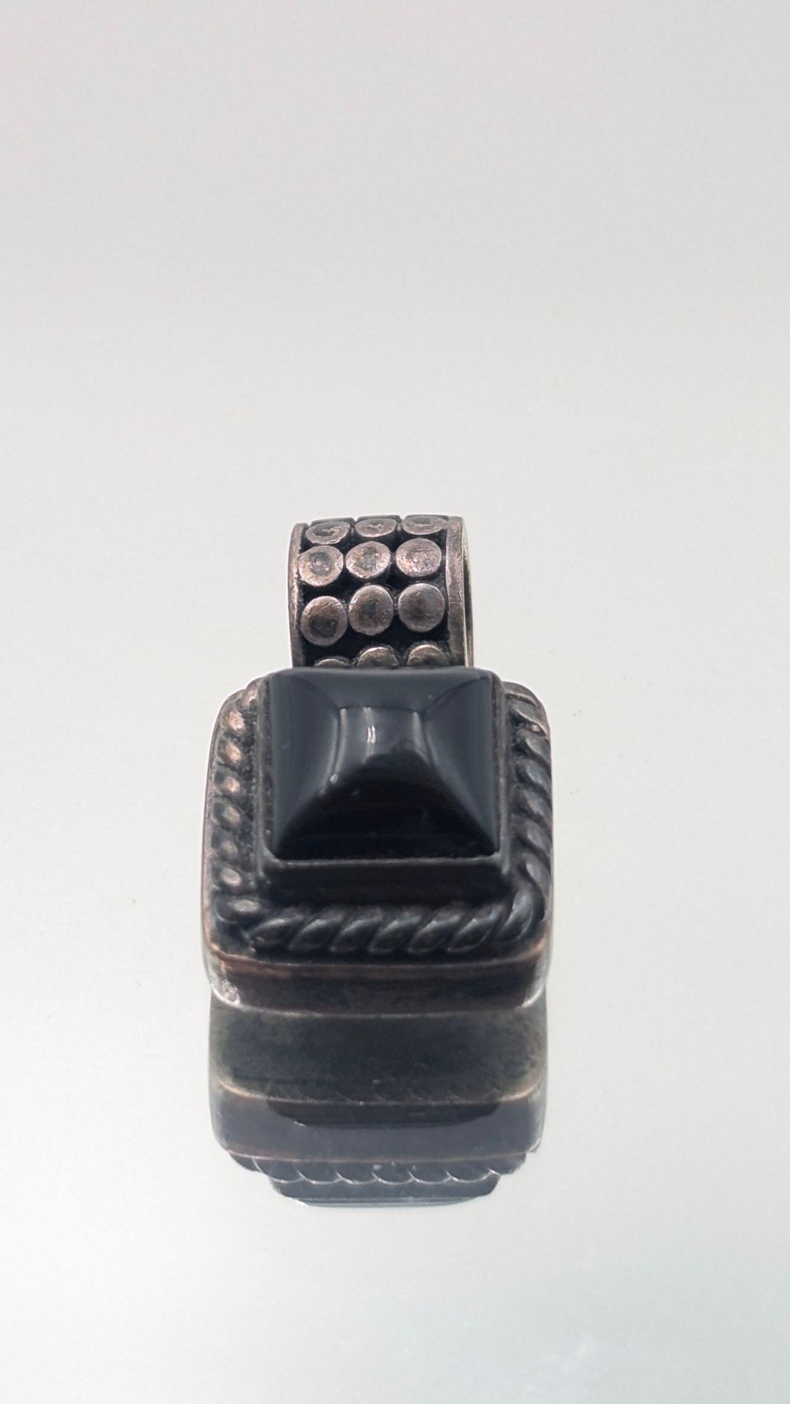 Vintage Indonesia 925 Sterling Silver Black Onyx Pyramid Pendant